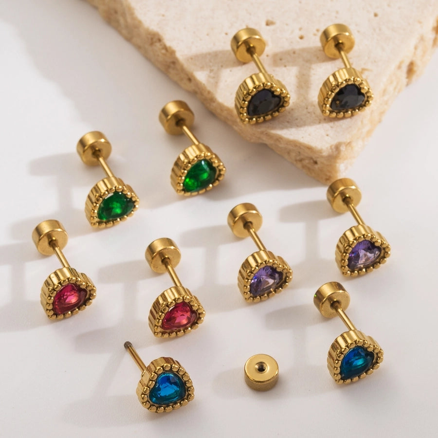 Express your love for timeless elegance with our Minimalist Heart Crystal Stud Earrings, meticulously crafted from durable stainless steel and luxuriously coated with a delicate 14k gold finish. These earrings feature a charming heart-shaped design adorned with a sparkling zircon crystal, available in a variety of captivating colors to suit your mood and style.
