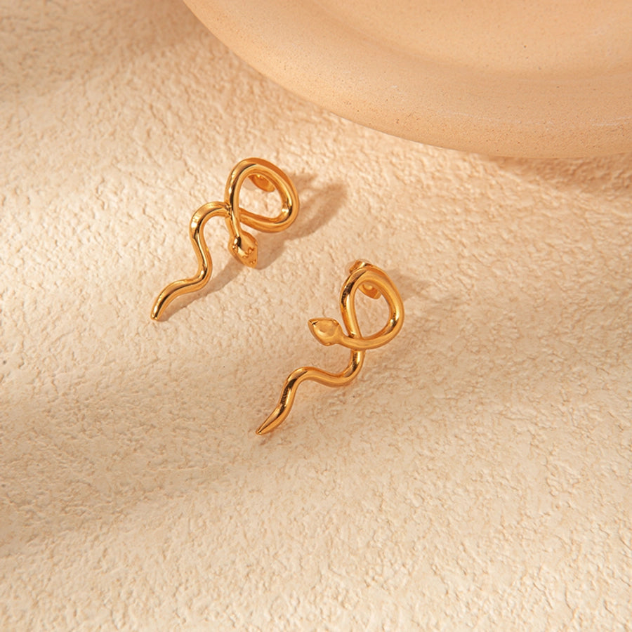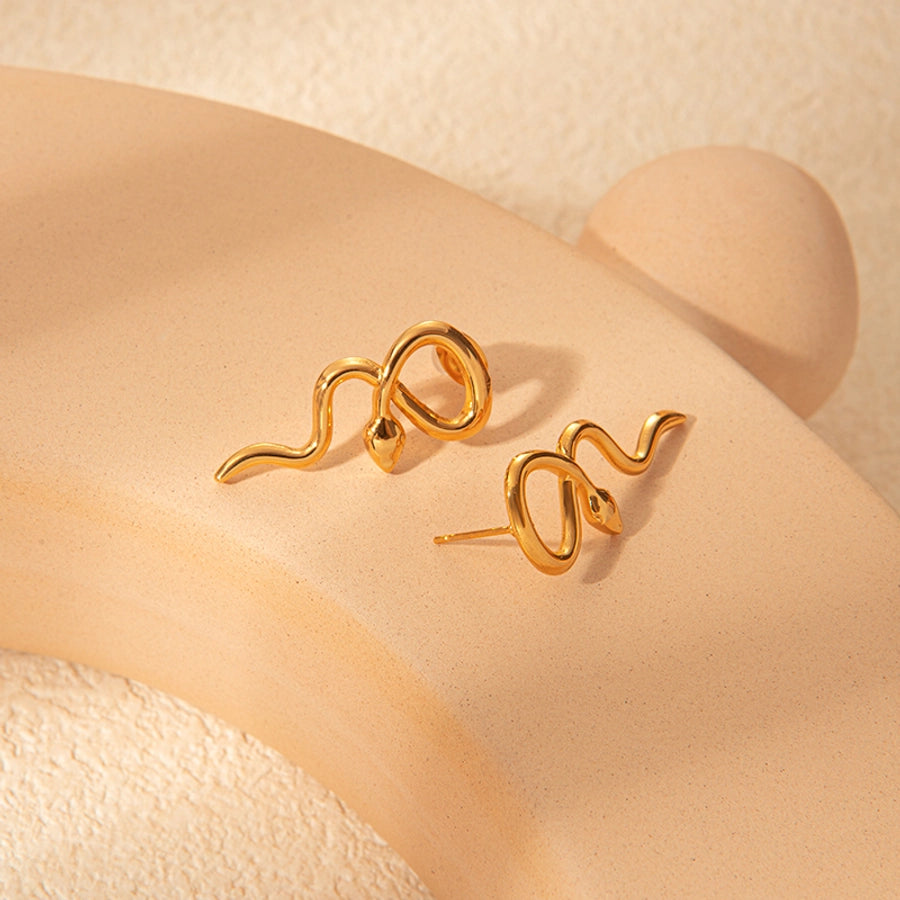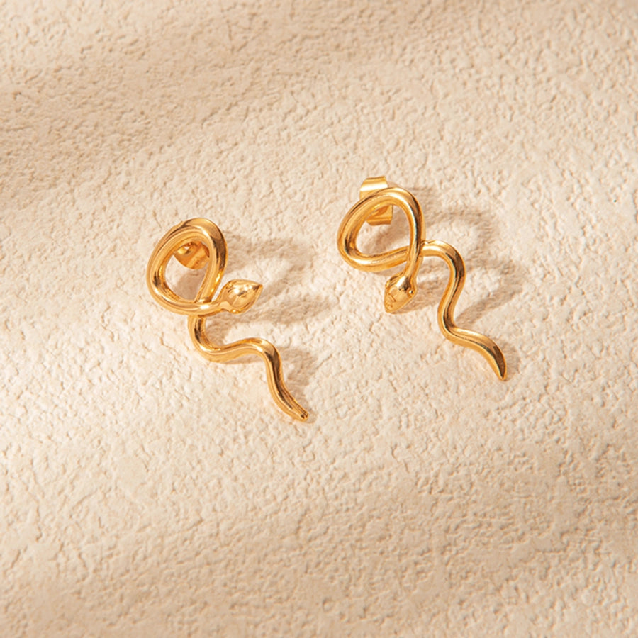 Add a touch of reptilian charm to your ensemble with our Minimalist Snake Stud Earrings, delicately crafted from durable stainless steel and coated with a radiant 18k gold finish. These earrings feature a sleek and minimalist design, showcasing tiny snake motifs that exude understated elegance and mystique.