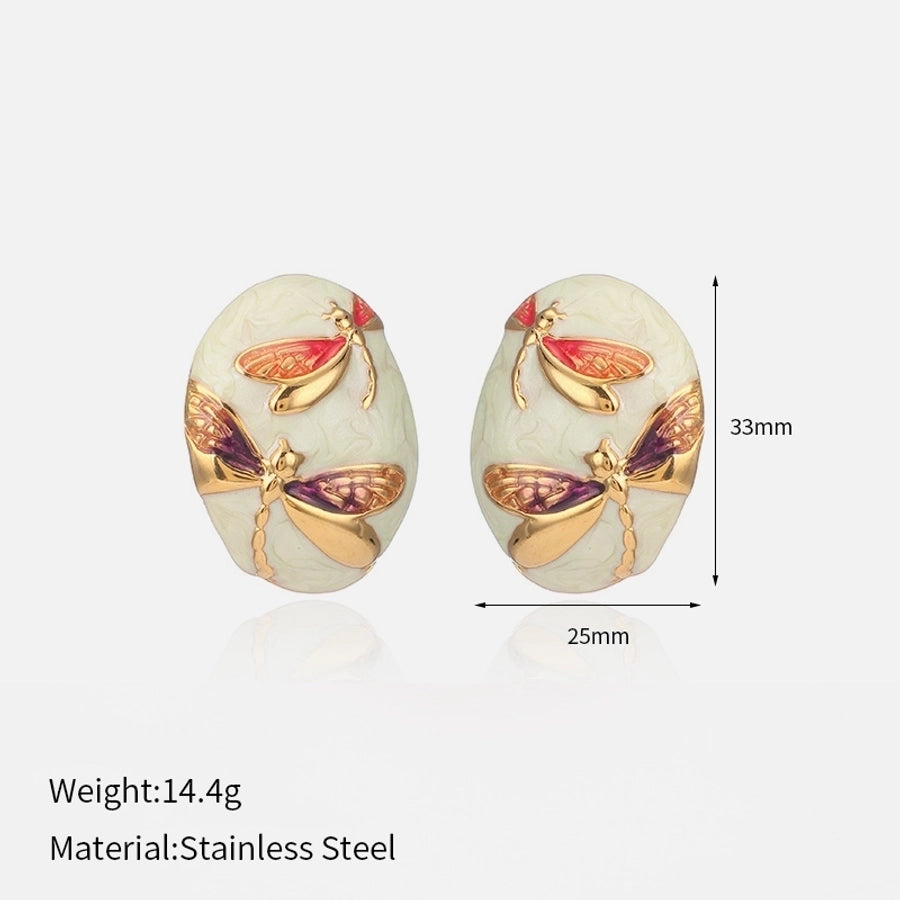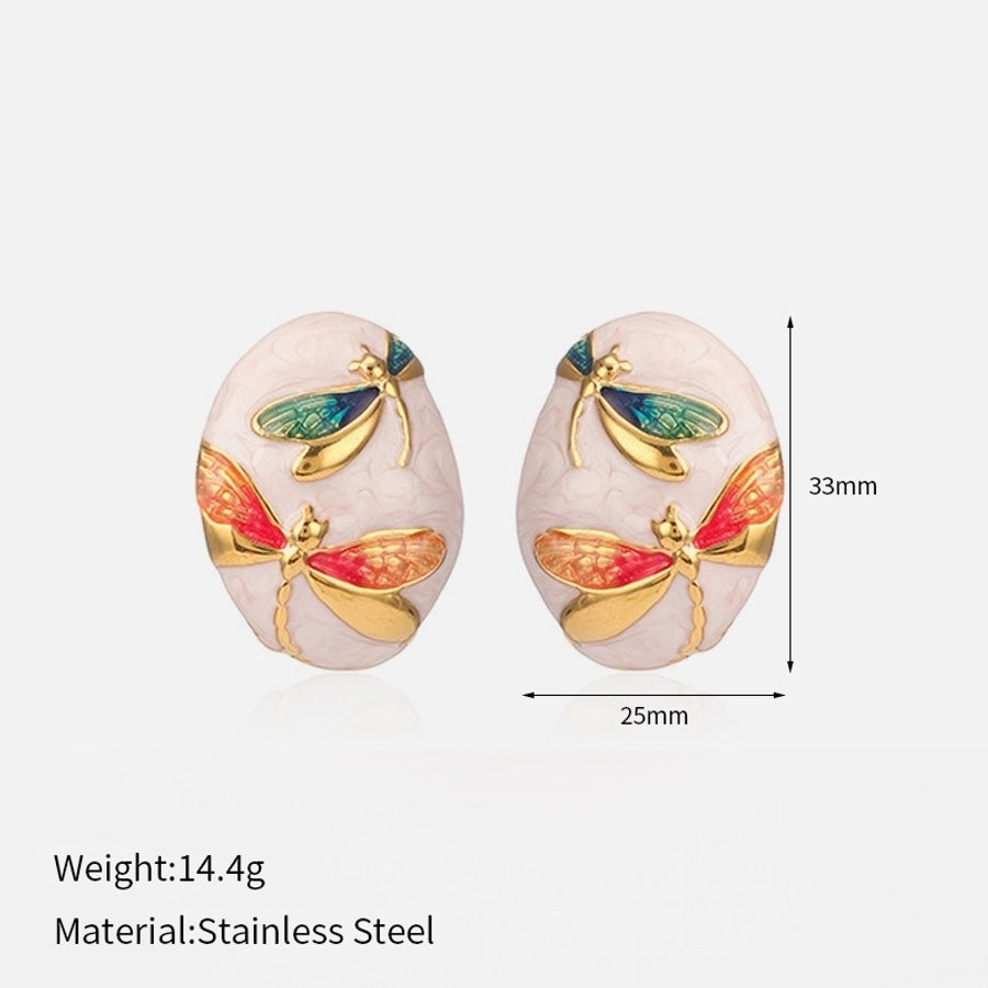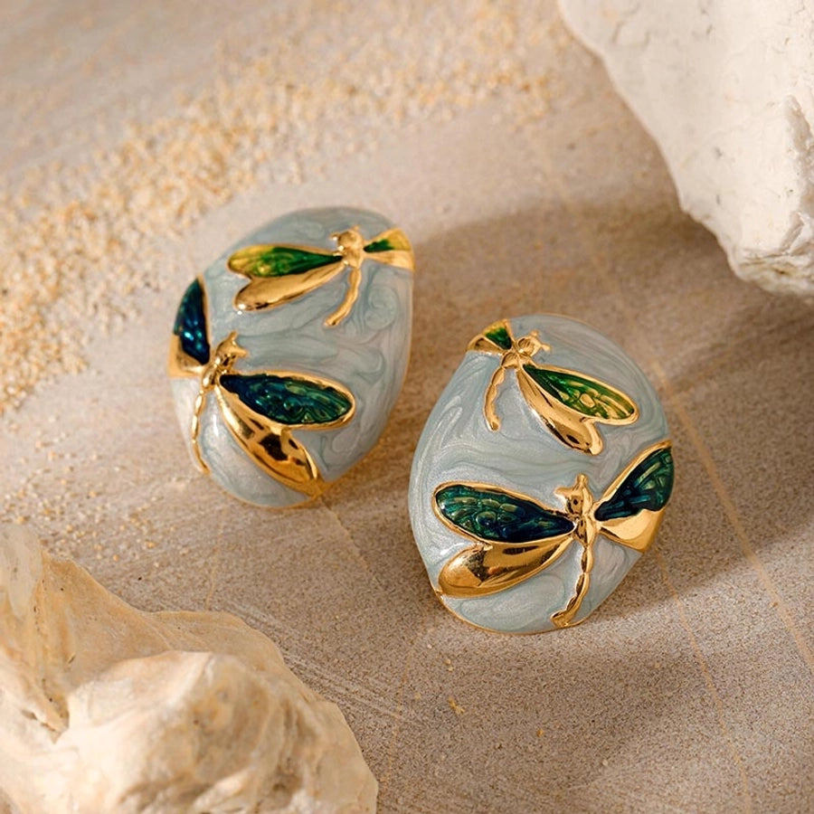 The Dragonfly Art Stud Earrings bring a whimsical touch to your jewelry collection. Crafted from durable stainless steel and enhanced with a luxurious 18k gold finish, these earrings feature intricate enamel art that captures the delicate beauty of dragonflies. Available in three stunning colors, they add a pop of vibrancy to any outfit while celebrating the charm of nature.