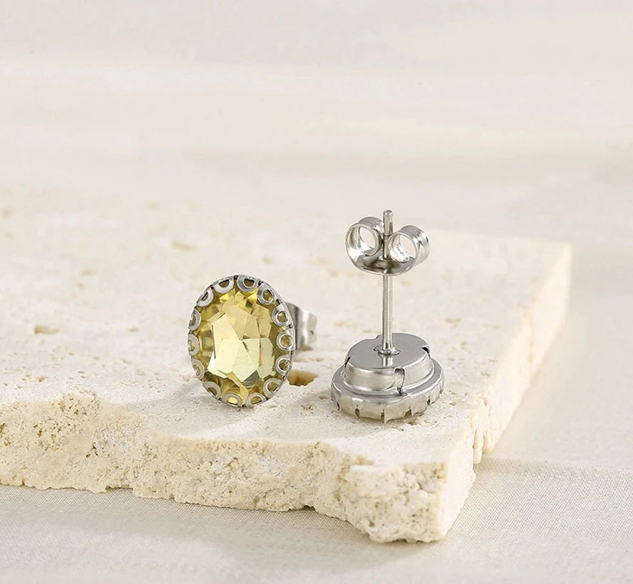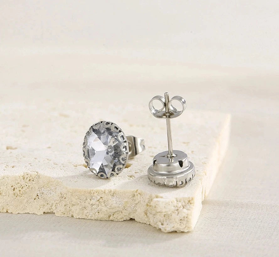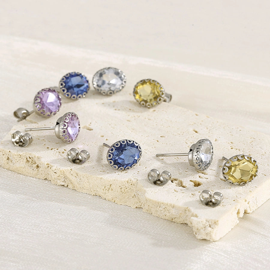 Illuminate your style with our Minimalist Oval Crystal Stud Earrings, meticulously crafted from durable stainless steel and adorned with sparkling zircon crystals available in a variety of captivating colors. These earrings feature a sleek oval design, exuding timeless elegance and versatility.