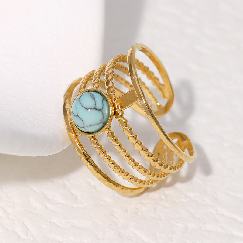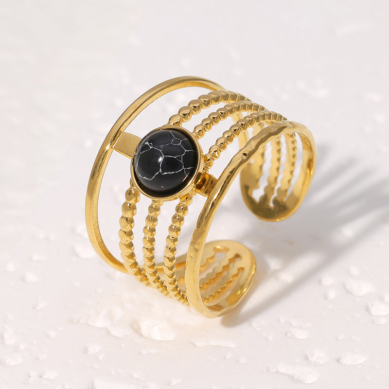 Elevate your ensemble with the grandeur of ancient Rome with our Roman Gemstone Open Rings, exquisite accessories designed to evoke the opulence of a bygone era. Crafted from durable stainless steel and finished with a luxurious 18k gold coating, these rings feature a classic Roman design with an open silhouette, allowing for adjustable sizing and versatility. Choose from four stunning gemstone options to add a touch of color and sophistication to your look.