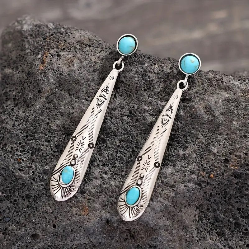Indulge in the vibrant spirit of Bohemian culture with our Bohemian Turquoise Drop Earrings, a captivating accessory designed to evoke the essence of free-spirited style and wanderlust. Crafted with meticulous attention to detail, these earrings feature intricate designs adorned with vibrant turquoise gemstones, exuding a sense of natural beauty and artistic flair.