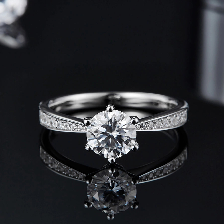 Experience timeless elegance with our Diamond Rings, a stunning statement of luxury and sophistication. This exquisite ring features DEF colorless diamonds, ensuring maximum brilliance and fire. Set in premium S925 sterling silver and plated with rhodium for extra shine and durability, this ring is a dazzling centerpiece that captures light from every angle. The diamonds, boasting VVS1-VVS2 clarity, sparkle with exceptional purity, while the ring is NGIC & IGI certified to guarantee its high quality and ethical sourcing.