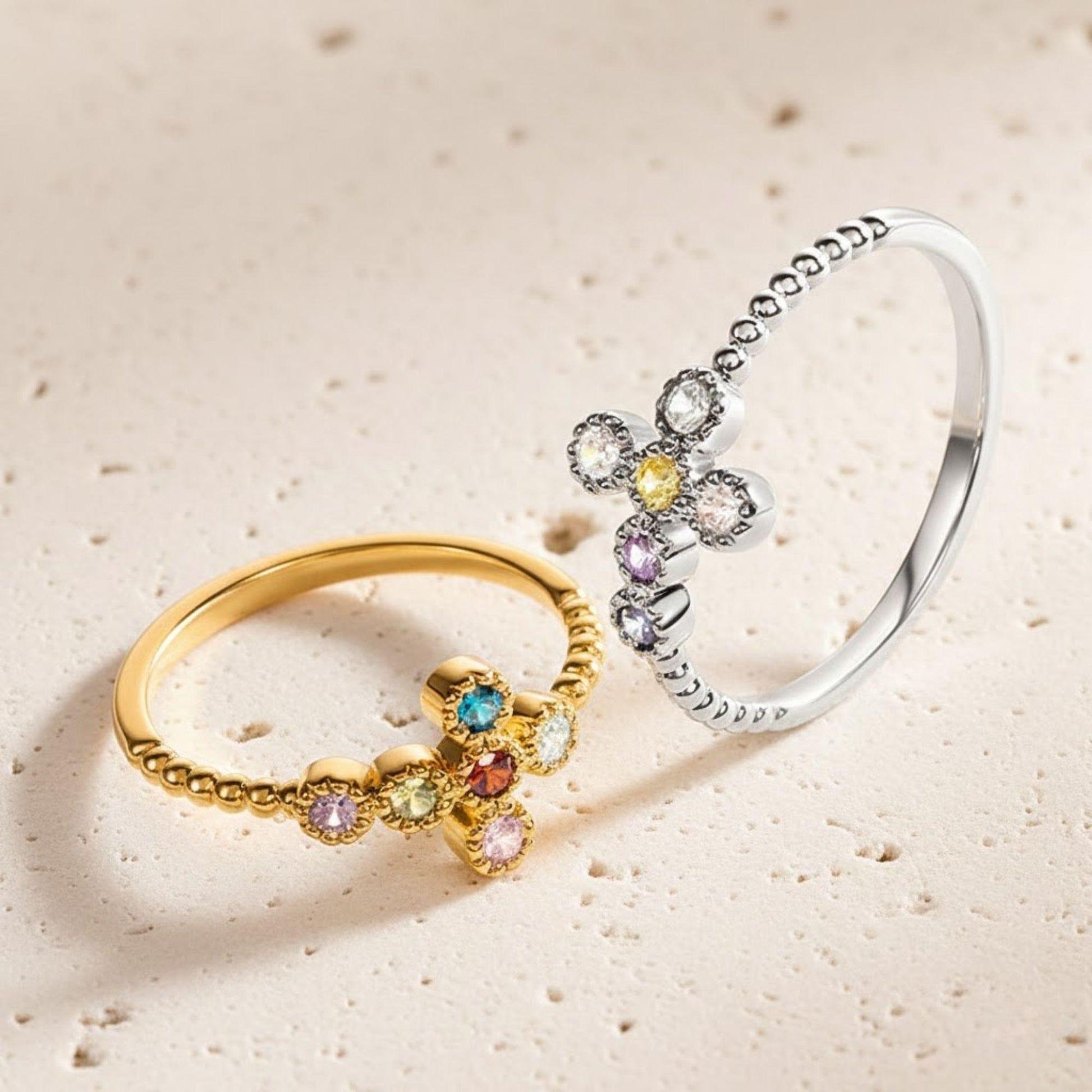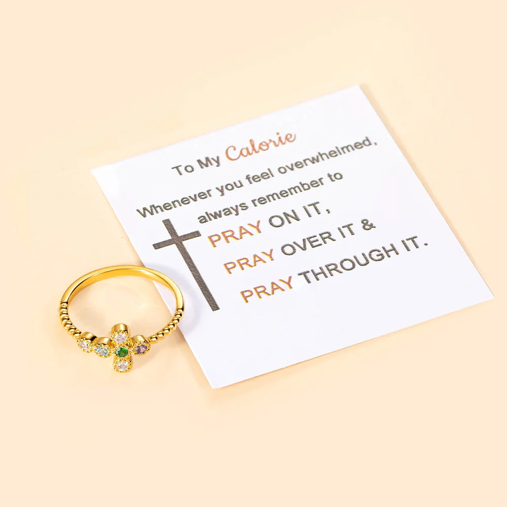 Carry the meaningful symbols of your loved ones with the custom 1-6 birthstones cross ring — a beautiful way to blend faith and family in one elegant piece. Featuring up to six personalized birthstones set around a classic cross design, this ring becomes a daily reminder of the special people and moments that shape your life. It’s a timeless expression of love, connection, and spirituality.