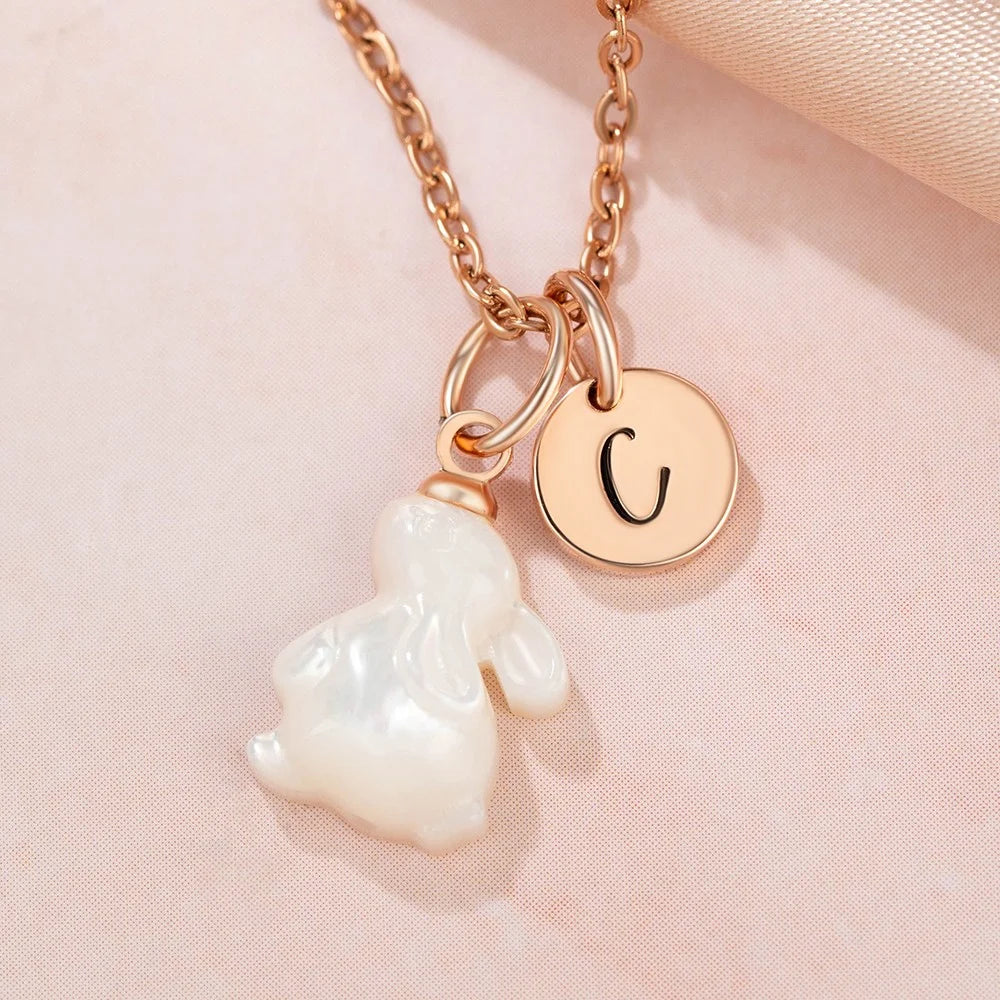Personalize your jewelry collection with this charming bunny initial necklace, expertly crafted to celebrate individuality. Featuring an adorable bunny motif paired with a custom initial charm, this piece combines whimsy with sophistication. Perfect for gifting or treating yourself, the delicate design works beautifully as an everyday accessory or a meaningful keepsake. The thoughtful customization makes it an ideal choice for those seeking jewelry that tells their unique story.