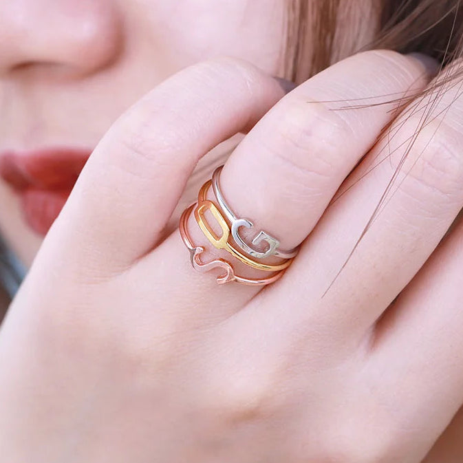 Elevate your jewelry collection with these exquisite custom dainty stackable initial rings. Crafted with precision, each delicate band features your chosen initial in refined lettering, allowing you to create a personalized combination that tells your unique story. The slim profile makes these rings perfect for stacking, enabling endless styling possibilities—mix and match initials to represent loved ones, meaningful dates, or personal milestones. Ideal for everyday wear or special occasions, these versatile pieces transition seamlessly from casual to formal settings. Whether you're treating yourself or gifting someone special, custom initial rings offer timeless elegance with a deeply personal touch.