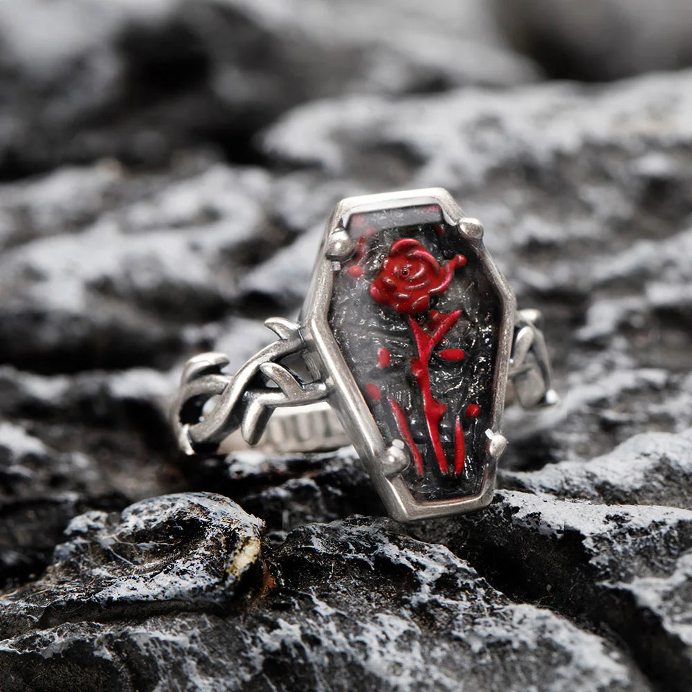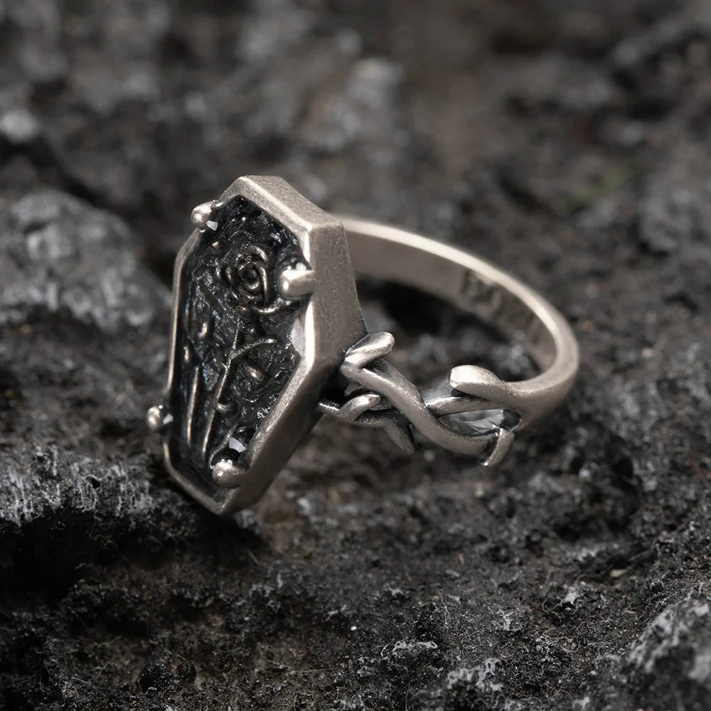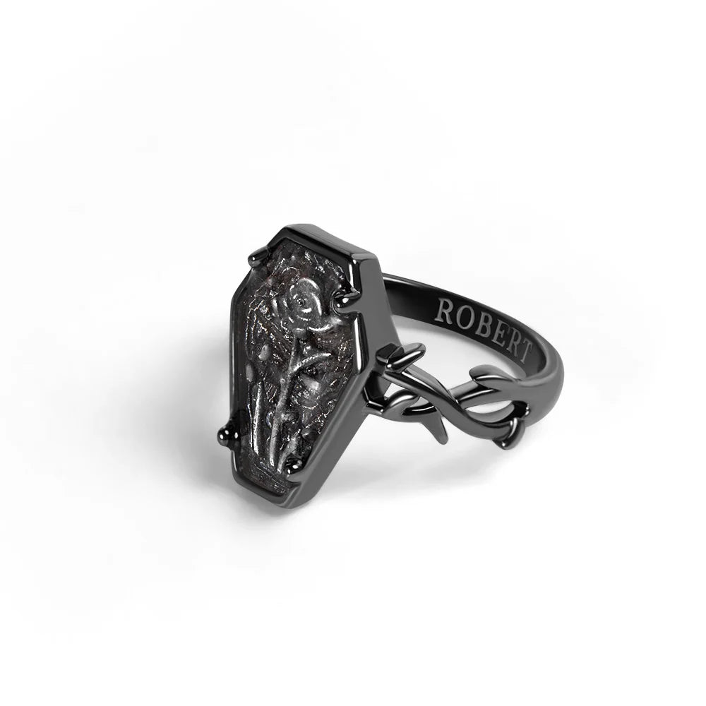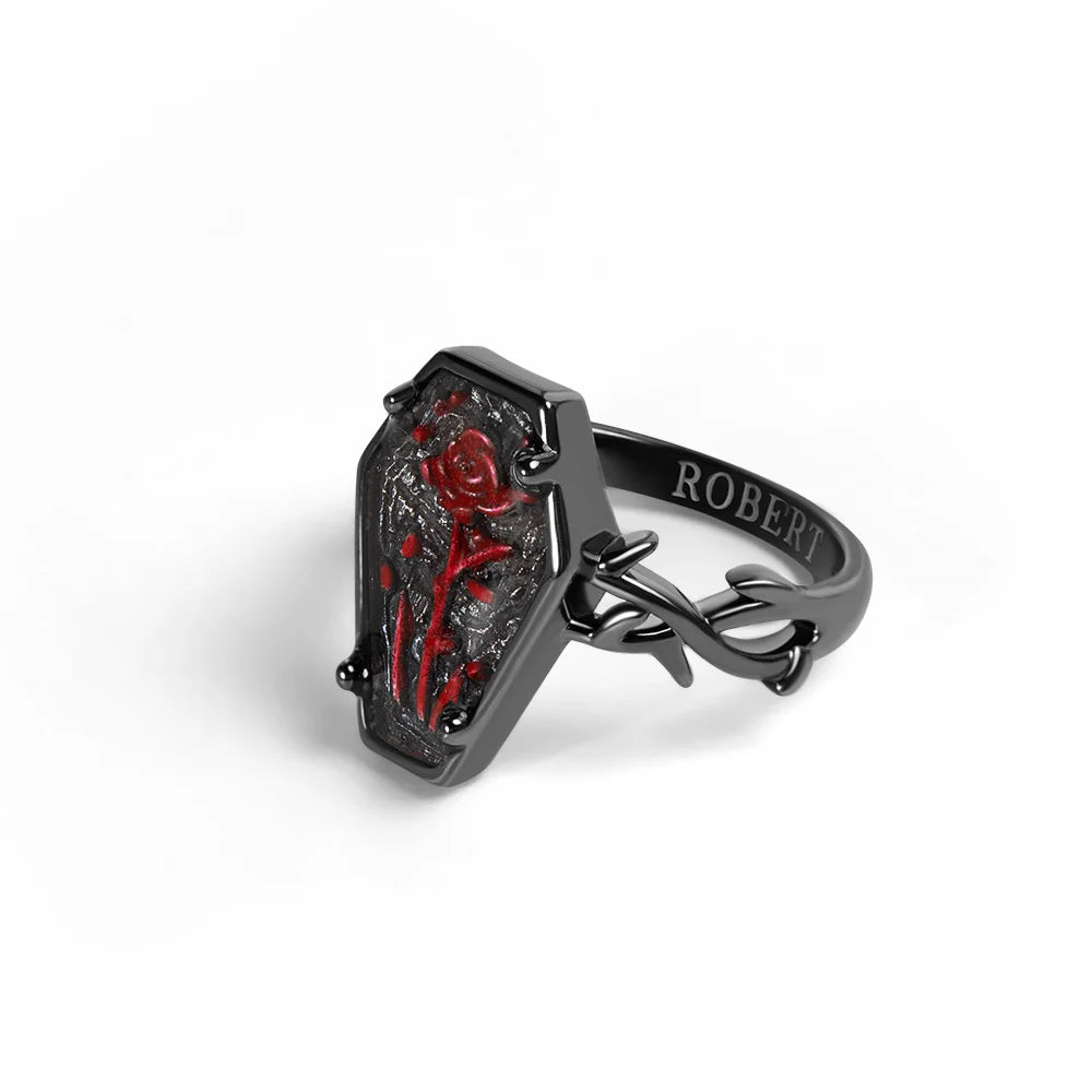 Custom Engraved Coffin Rose Ring