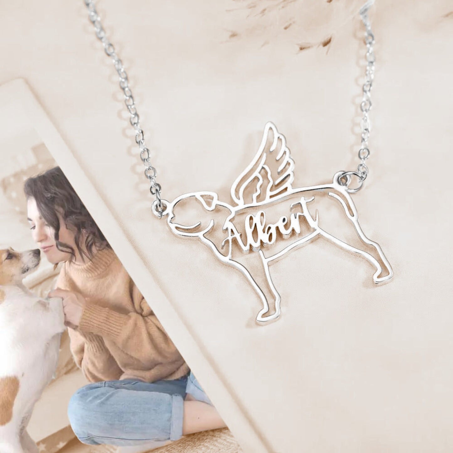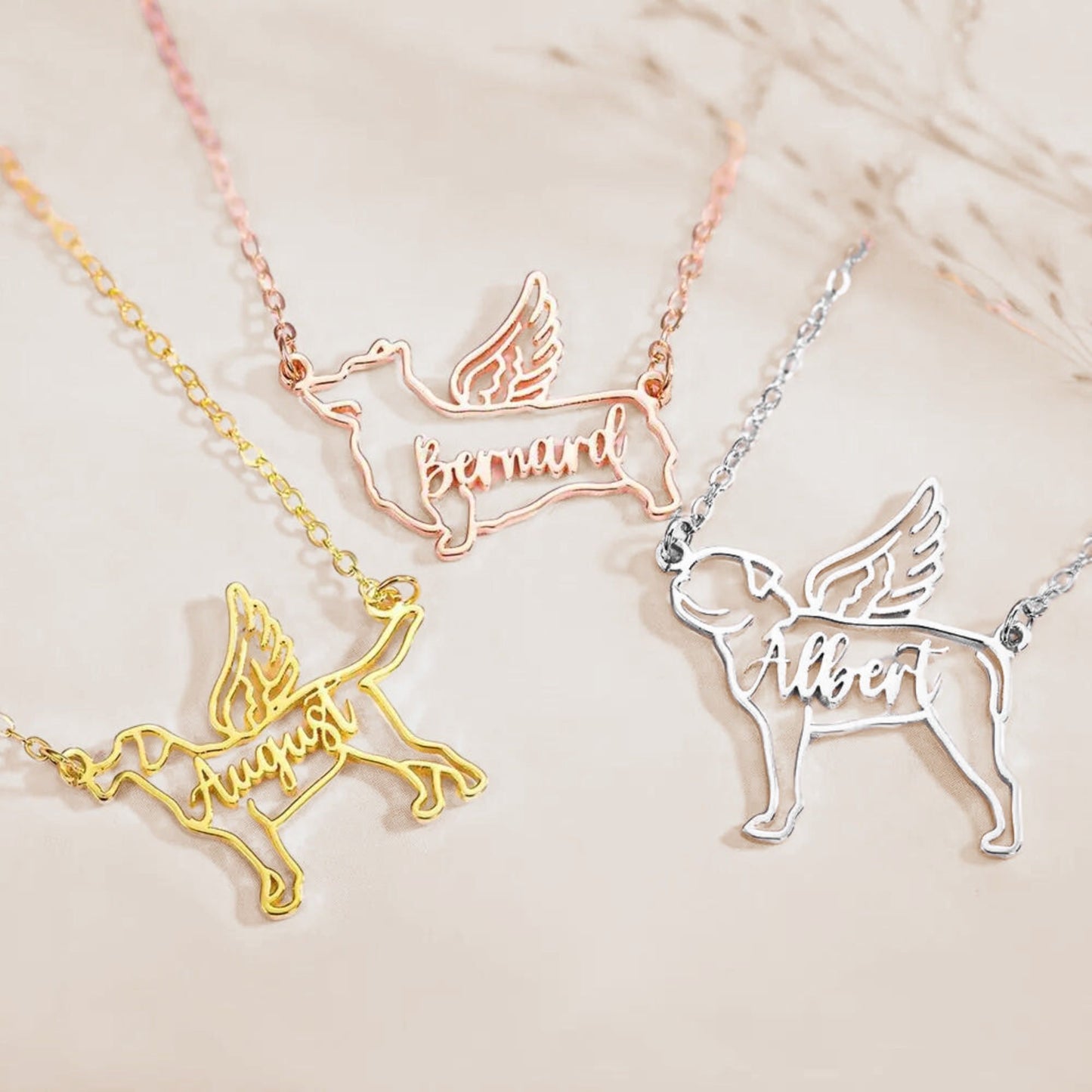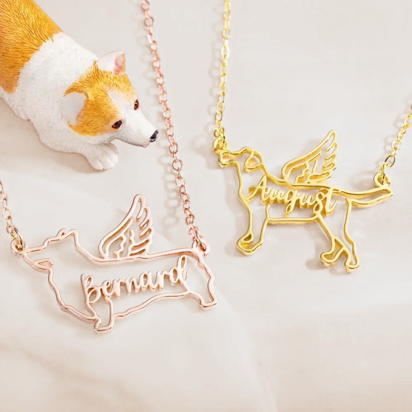 Custom Name Angel Dog Necklace