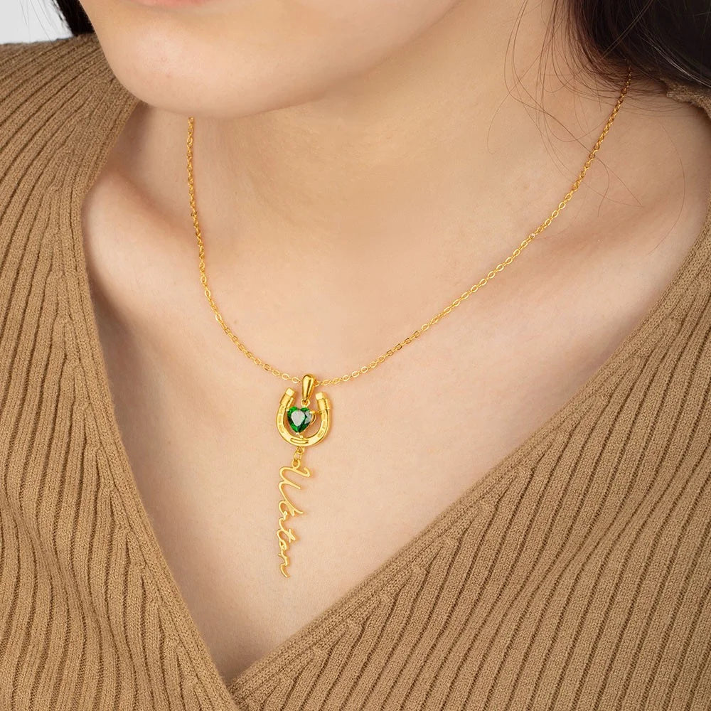 Custom Name Horseshoe Necklace with Birthstone
