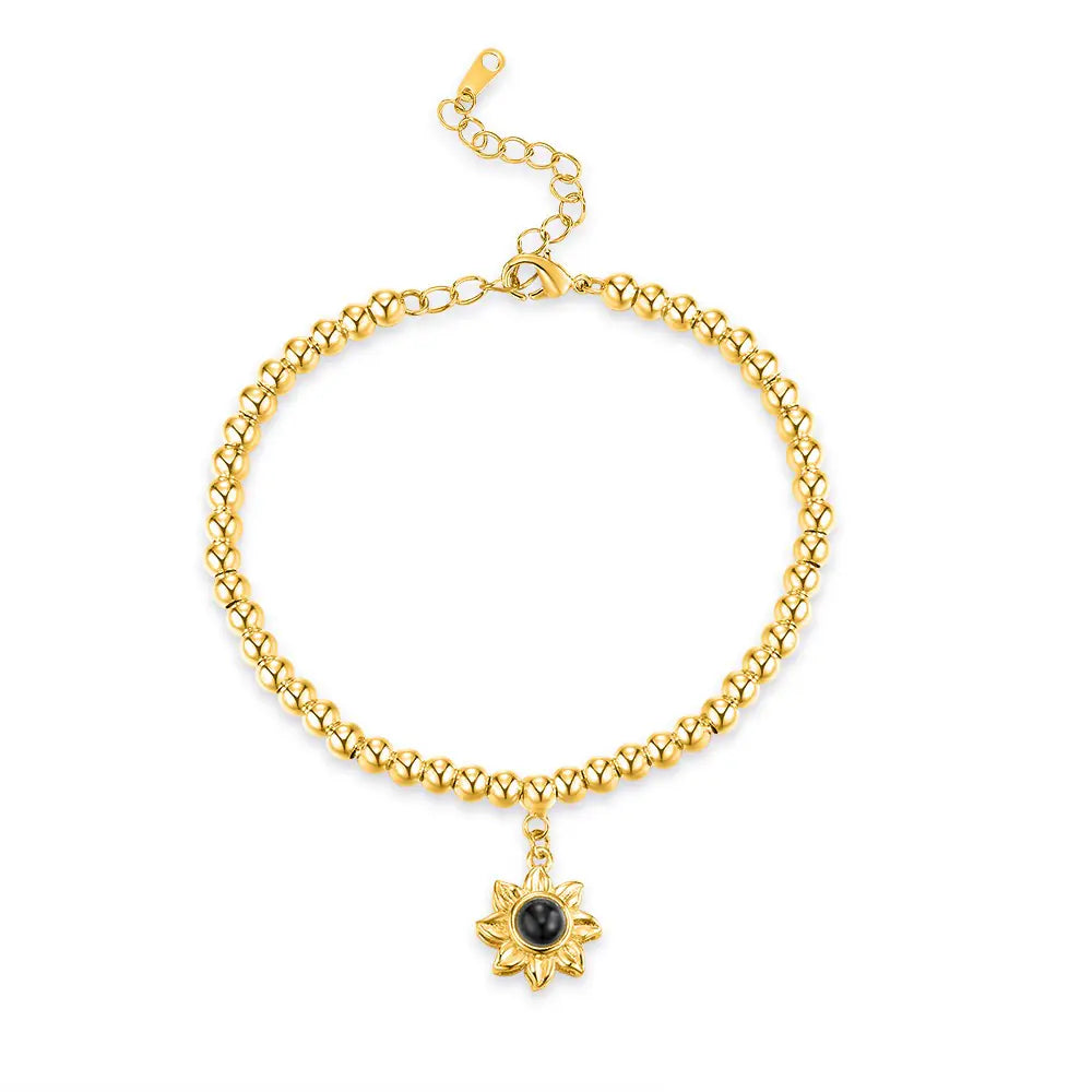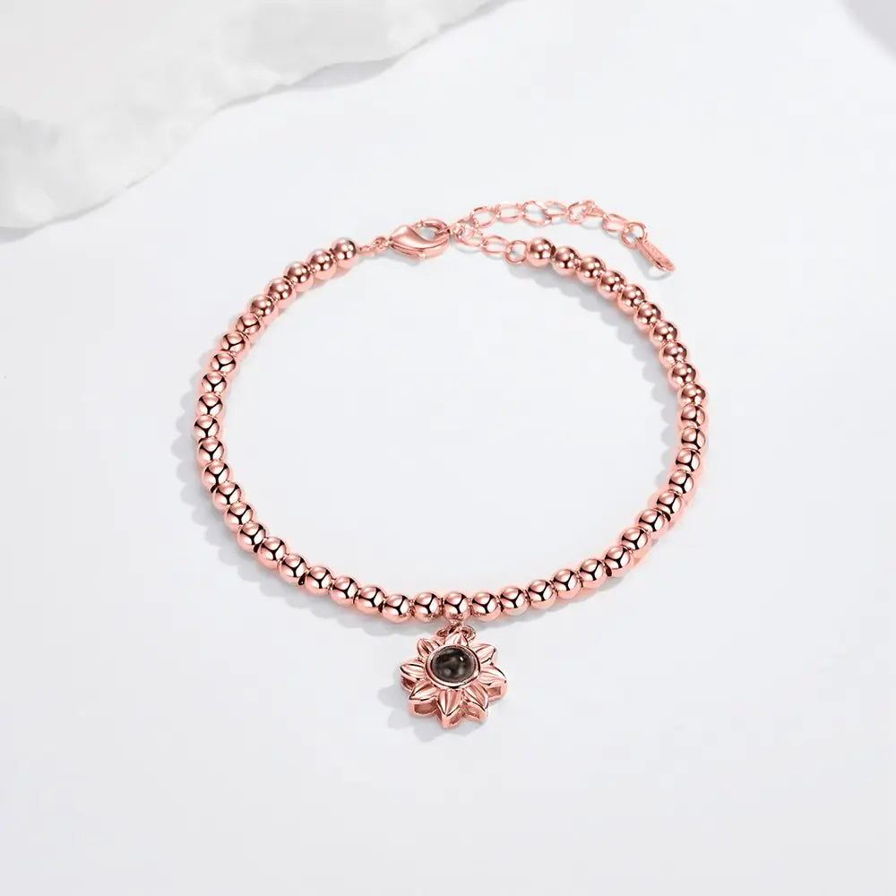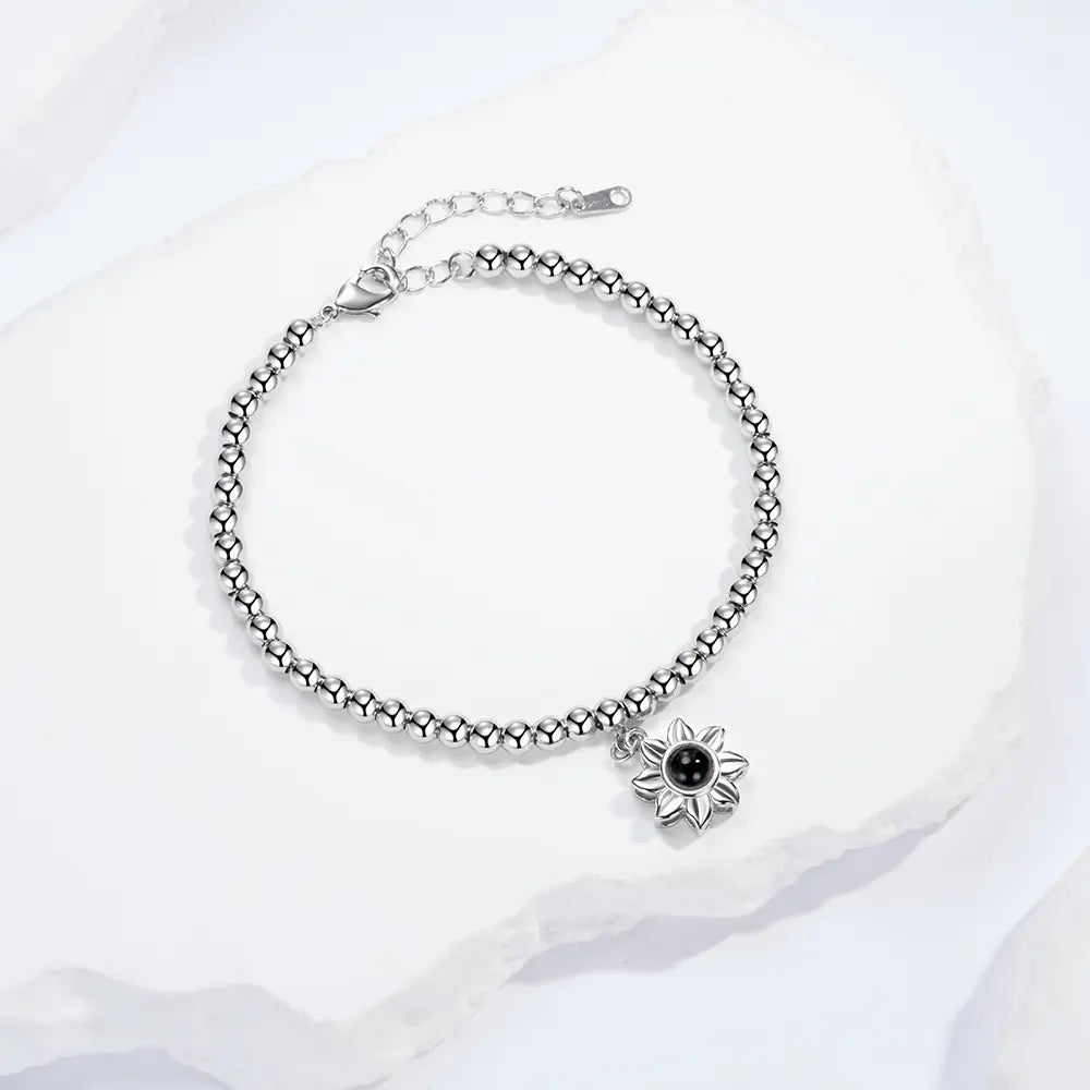 This bracelet is more than just a stylish accessory—it’s a meaningful way to celebrate your favorite moments and personal connections. The sunflower charm adds a touch of natural beauty, while the custom photo projection ensures that your most treasured memories are always close. It also makes a thoughtful gift, perfect for birthdays, anniversaries, or any special occasion, offering a blend of elegance and personalization that’s sure to be appreciated.
