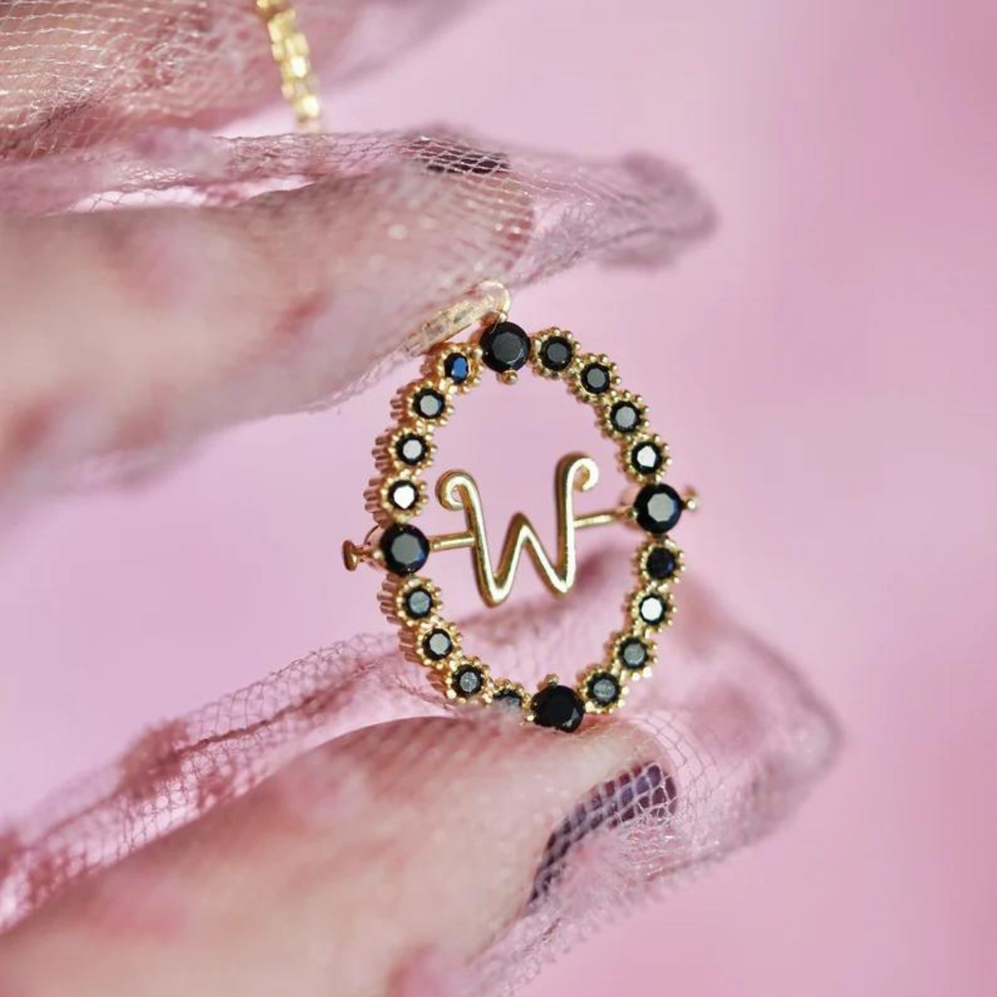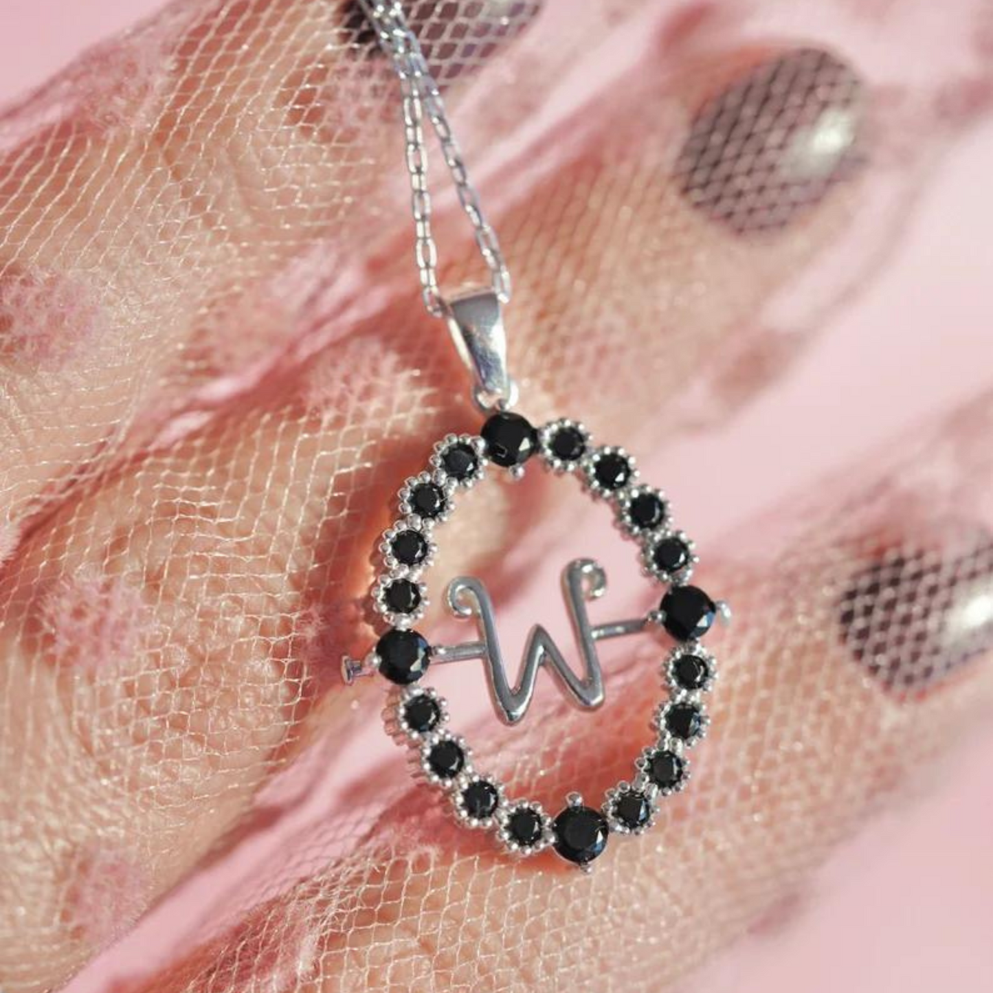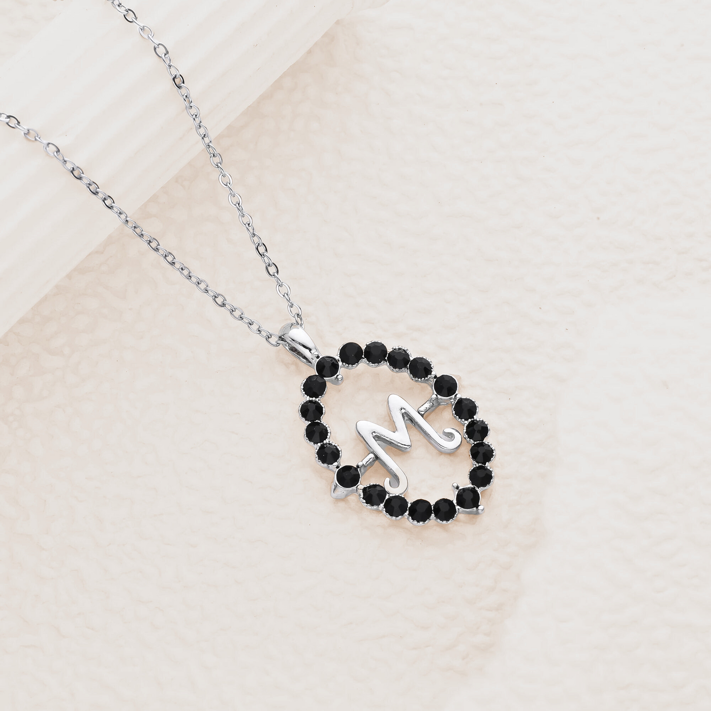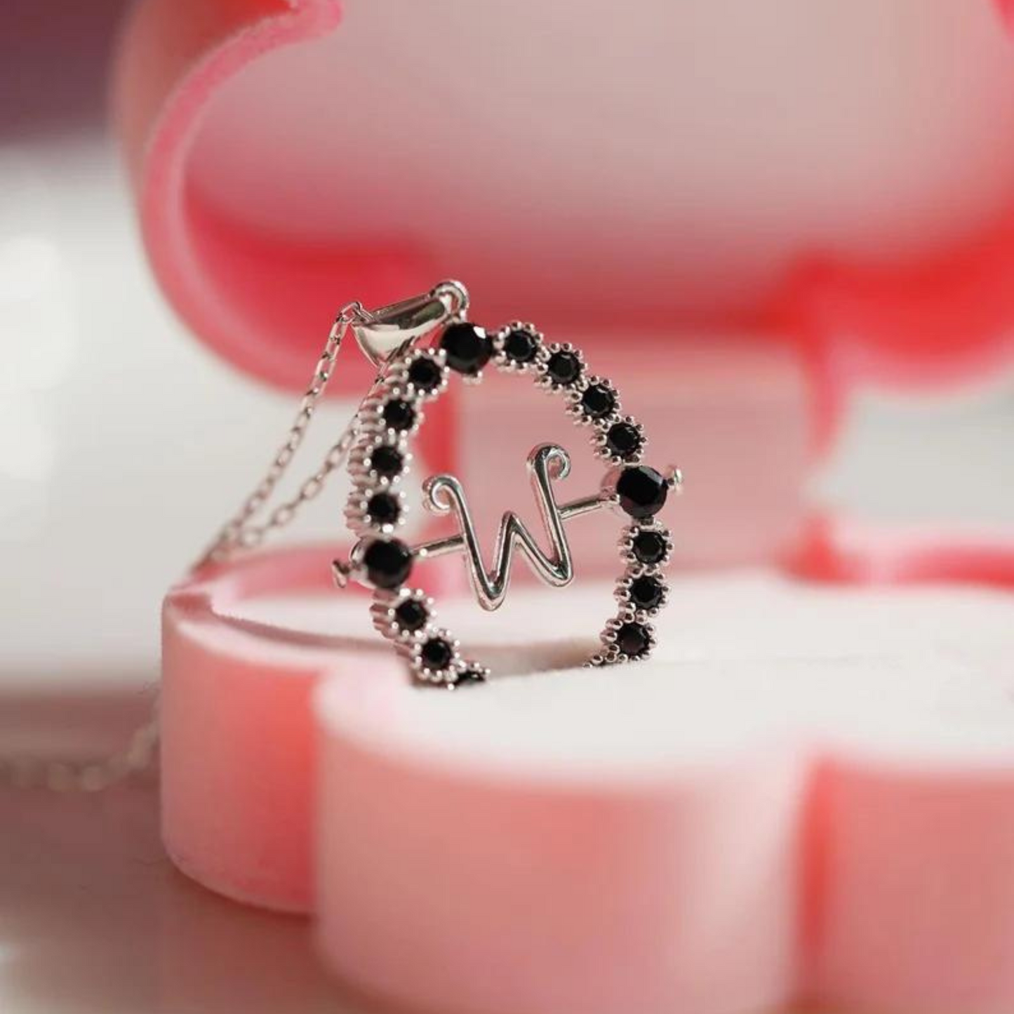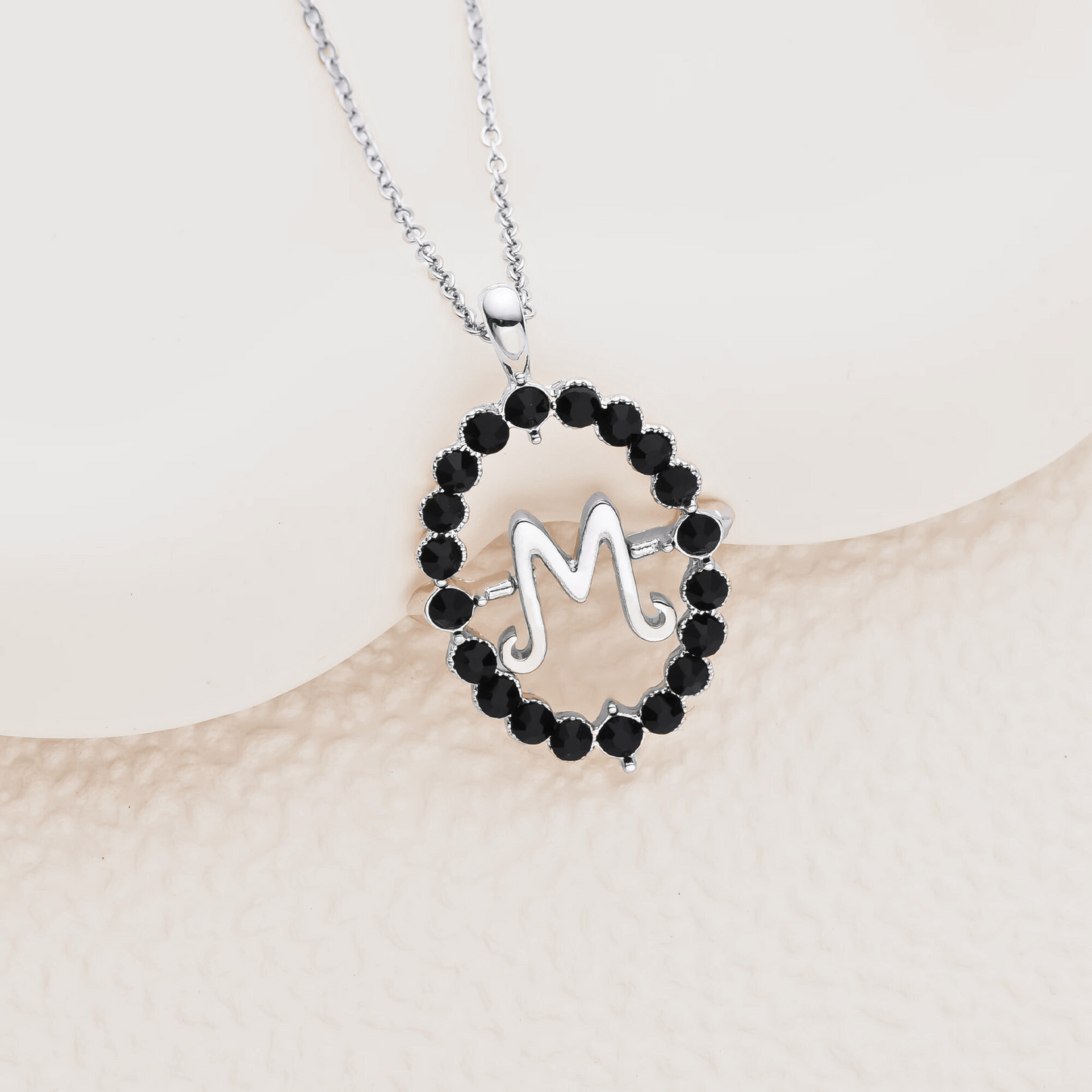 The spinning design allows you to showcase your initial in a dynamic and eye-catching way, while the black crystals add a touch of depth and contrast to the piece. Whether worn as a daily accessory or for special occasions, this necklace is sure to make a statement and turn heads wherever you go.