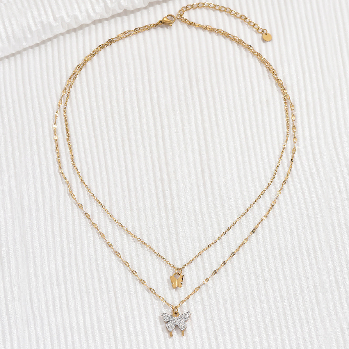 Choose from our first design, featuring a lariat-style necklace adorned with dainty shell charms and a butterfly pendant, or opt for our second design, which boasts a layered necklace with a delicate chain adorned with shell accents and a butterfly charm. Whichever design you choose, you're sure to make a statement with this unique and elegant piece.