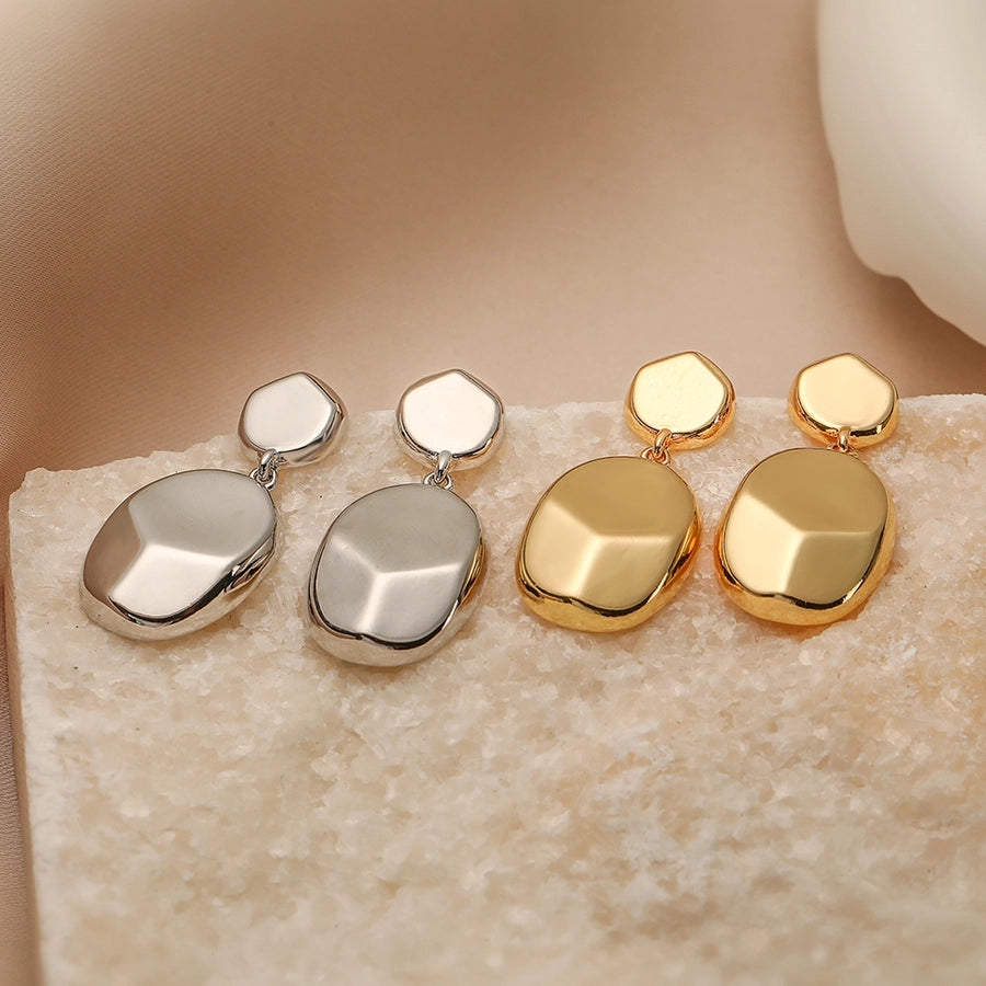 The Elisabetta Drop Earrings are a stunning blend of sophistication and contemporary style. Crafted from durable stainless steel, these earrings are also available with a luxurious 18K gold finish, allowing you to choose the perfect look for any occasion. Their elegant drop design adds movement and flair, making them an eye-catching accessory that can elevate any outfit, from casual to formal.