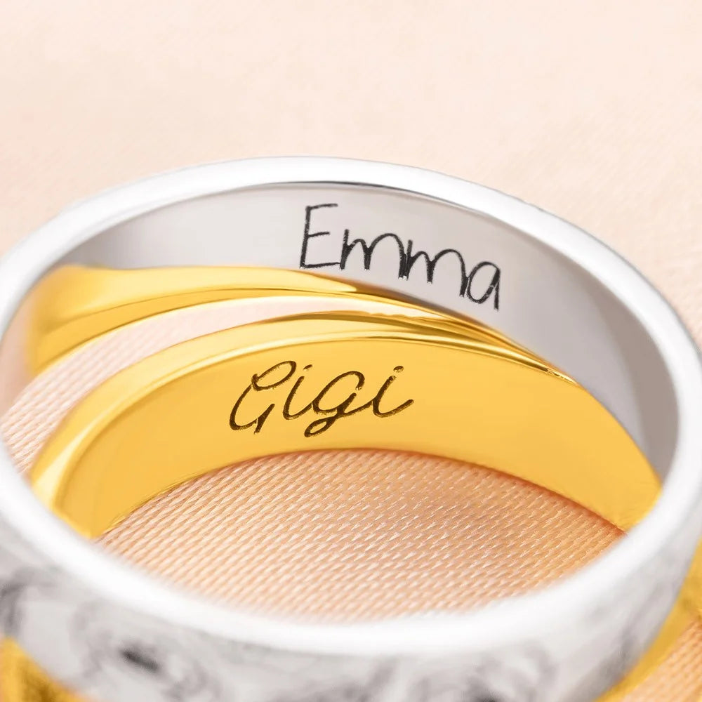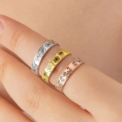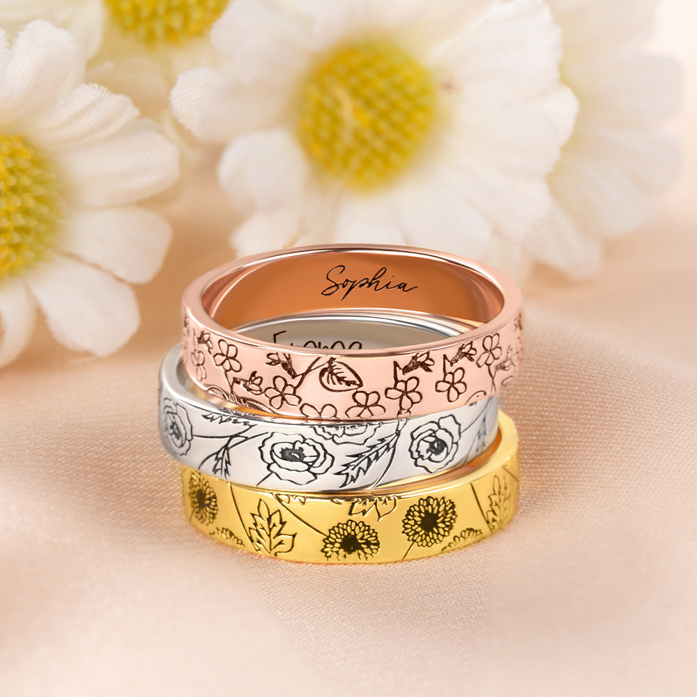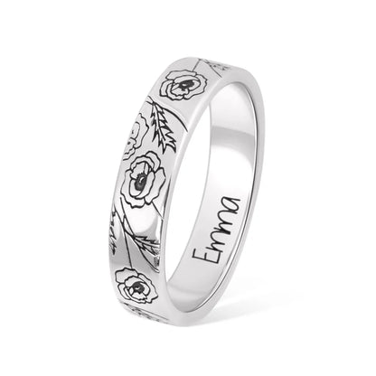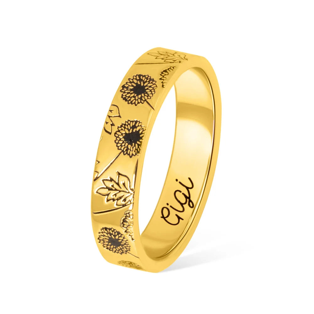 Carry the beauty of your loved ones with you in the most delicate way with the engraved combined birth flowers ring. Each flower etched into this piece represents someone dear, blending their meanings and memories into one harmonious design. It’s a subtle, intimate way to celebrate your story, your roots, and the people who make your world bloom.