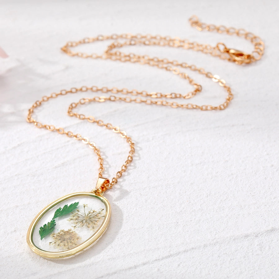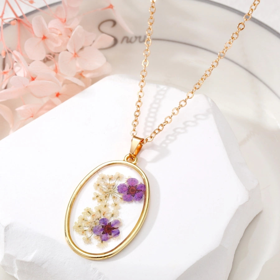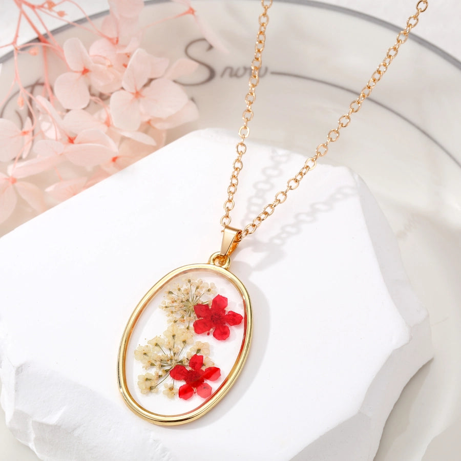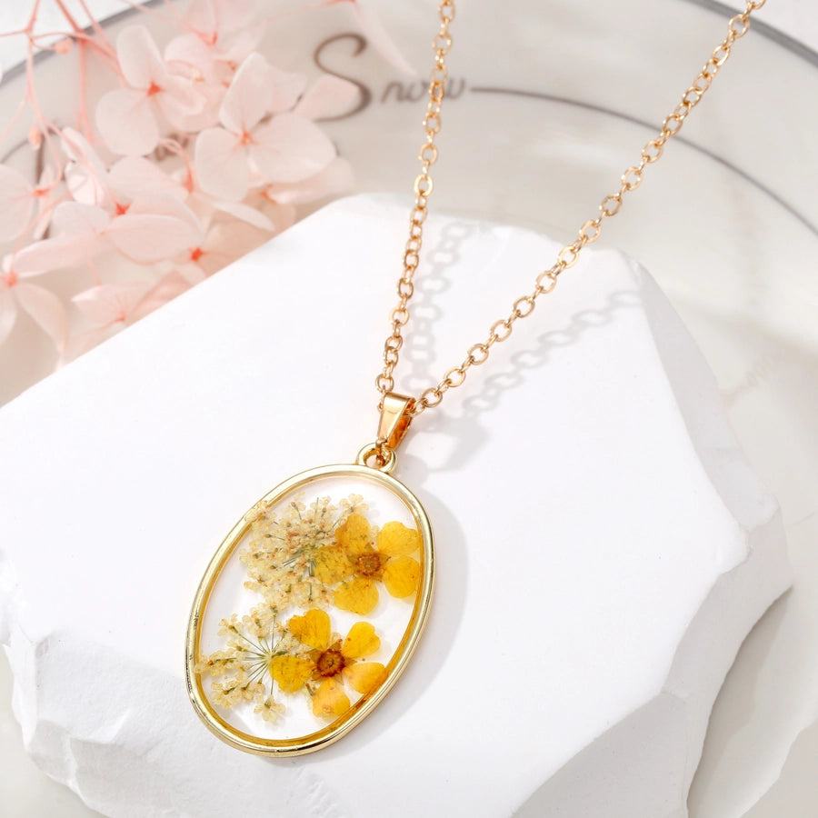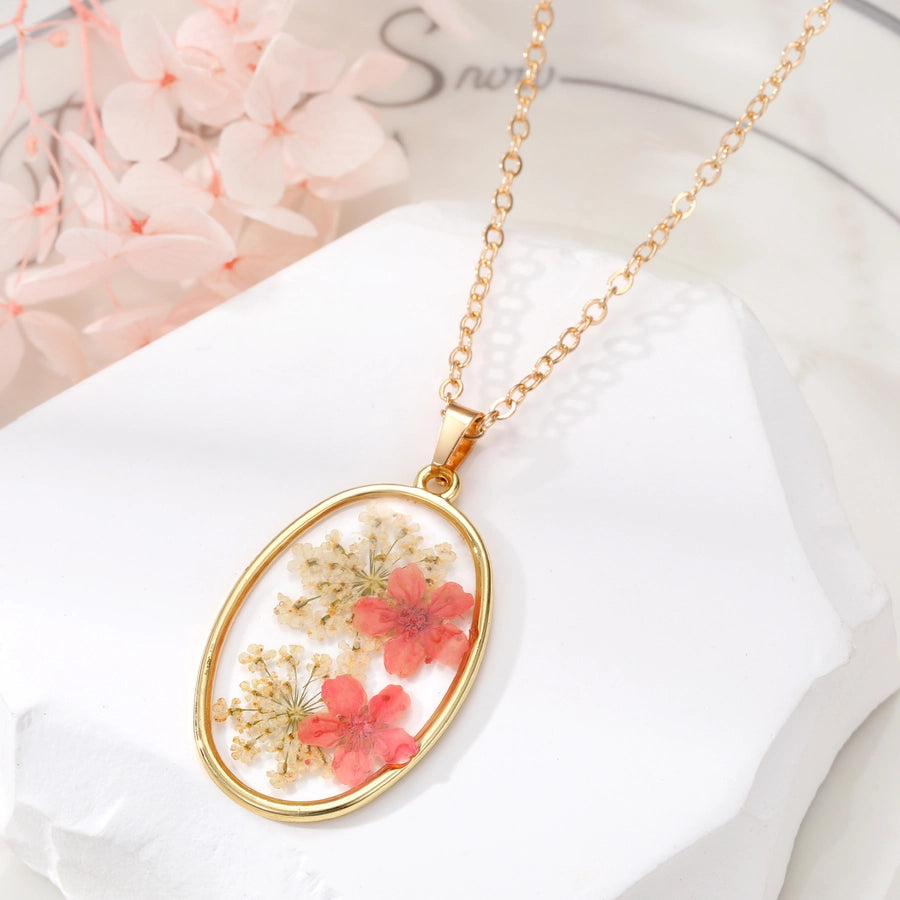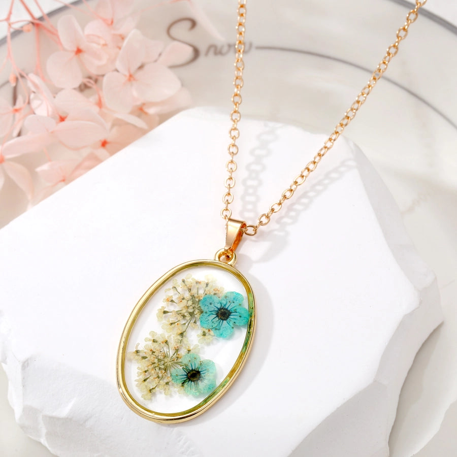 - Real pressed flowers encased in resin, each necklace is unique