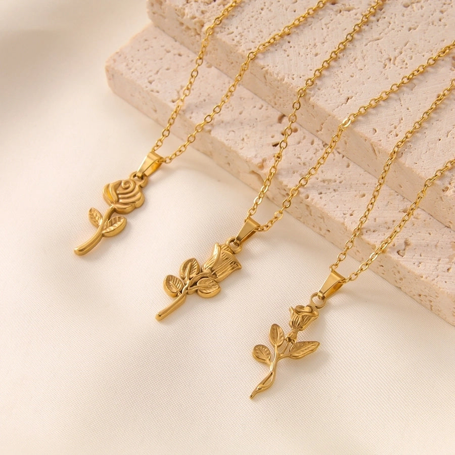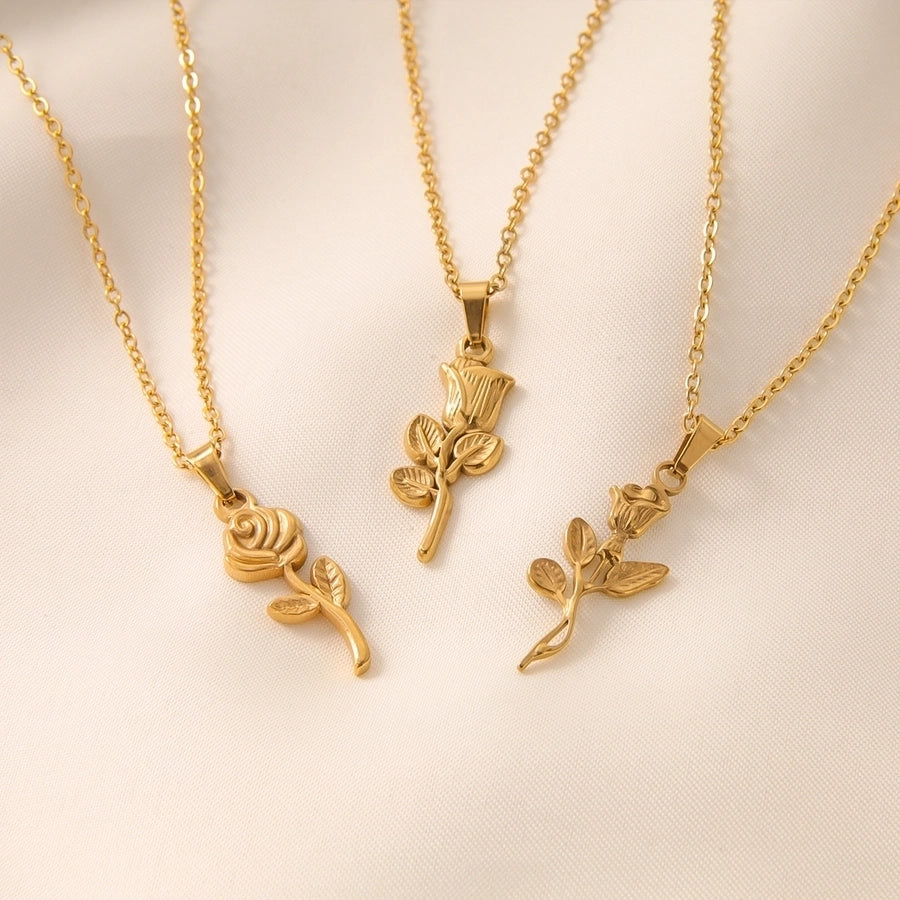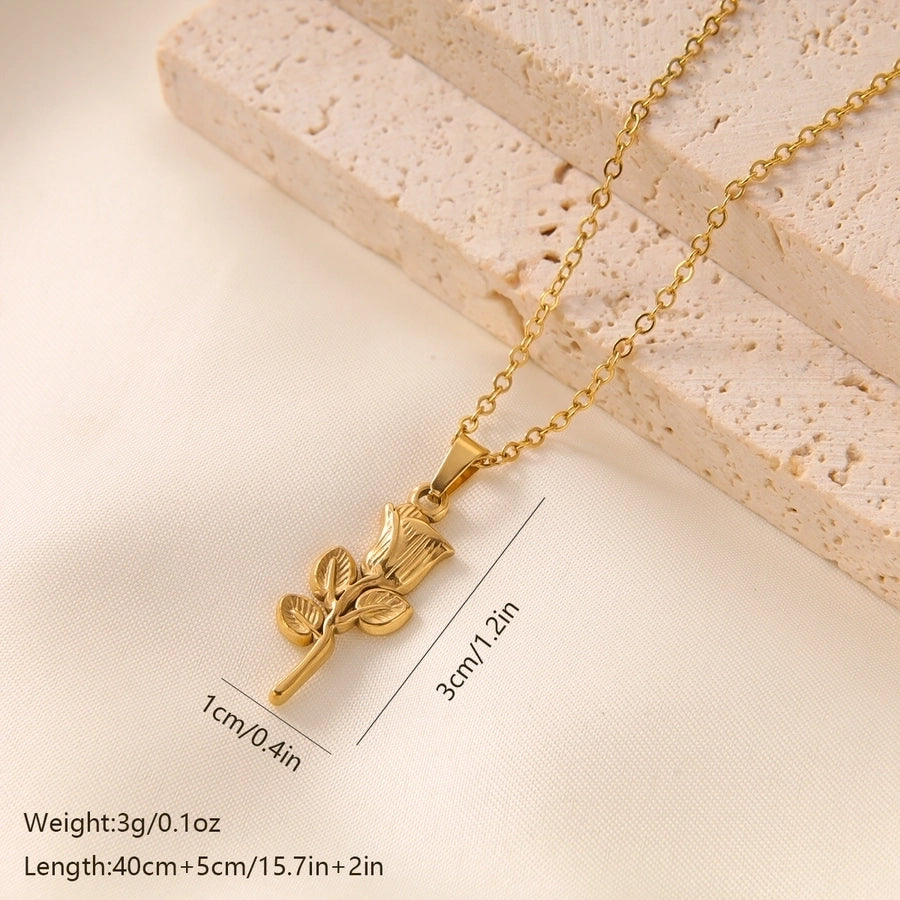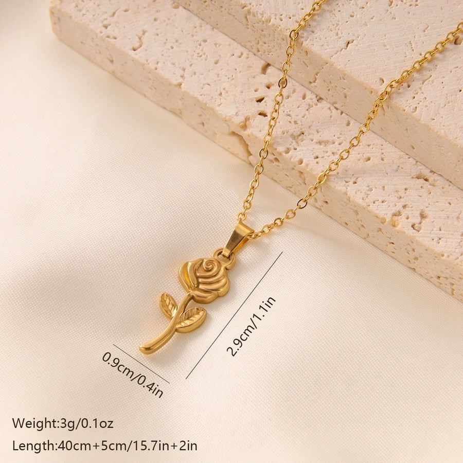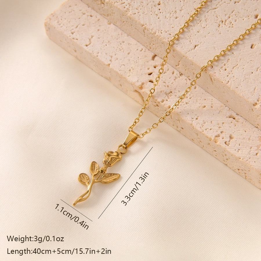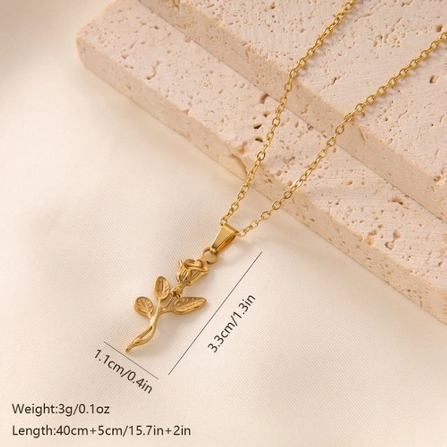 The Eternal Rose Golden Pendant Necklace beautifully captures the essence of elegance and romance. Crafted from durable stainless steel and finished with a luxurious 18K gold plating, this necklace features a stunning rose pendant that symbolizes love and beauty. Its exquisite design makes it a perfect accessory for both casual and formal occasions, adding a touch of sophistication to any outfit.