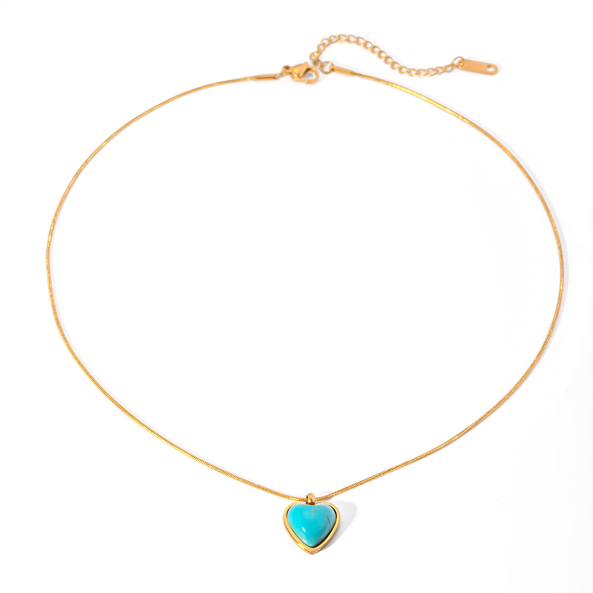 Adorn yourself with the tender sentiment of love and the serene allure of turquoise with our Golden Heart Turquoise Pendant Necklace. Crafted from durable stainless steel and bathed in an exquisite 18k gold finish, this necklace boasts both durability and luxurious aesthetics.