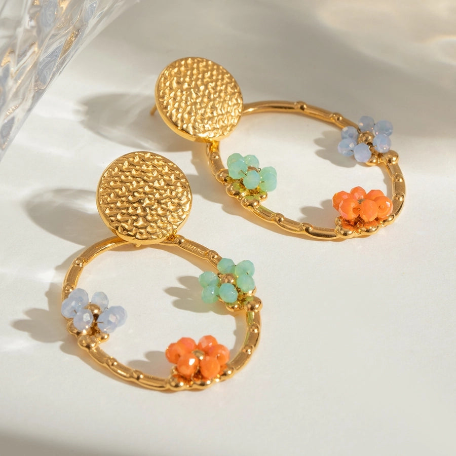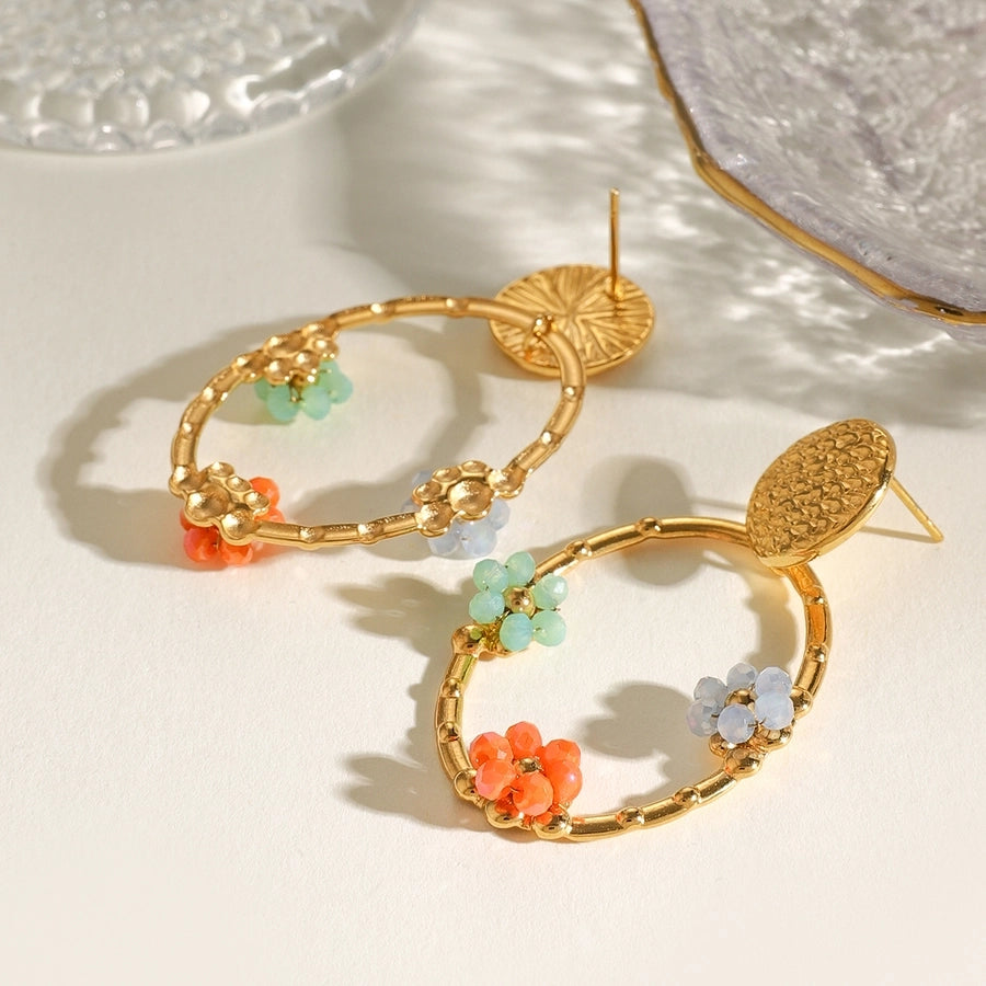 The Handmade Summer Gem Flowers Drop Earrings are a vibrant celebration of nature's beauty, crafted from durable stainless steel and finished with a luxurious 18K gold coating. Each earring features intricate flower designs adorned with colorful gemstones, bringing a playful and refreshing touch to your jewelry collection. These earrings are perfect for adding a pop of color to any outfit, whether you're heading to a summer garden party or enjoying a casual day out.