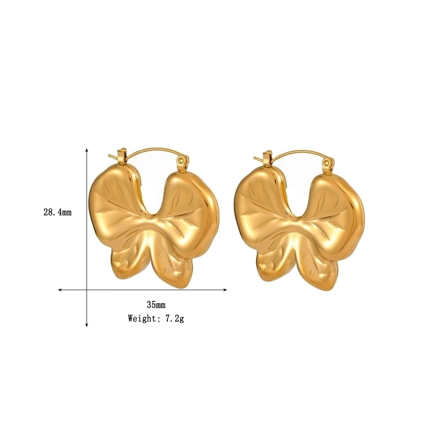 The Iris Butterfly Hoop Earrings are a captivating blend of nature and elegance, beautifully crafted from durable stainless steel with a luxurious 18K gold finish. Featuring a unique design inspired by the delicate beauty of the iris flower transformed into a butterfly, these earrings are perfect for adding a whimsical touch to any outfit. Their lightweight construction ensures comfort, making them an ideal choice for all-day wear.