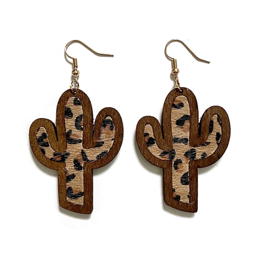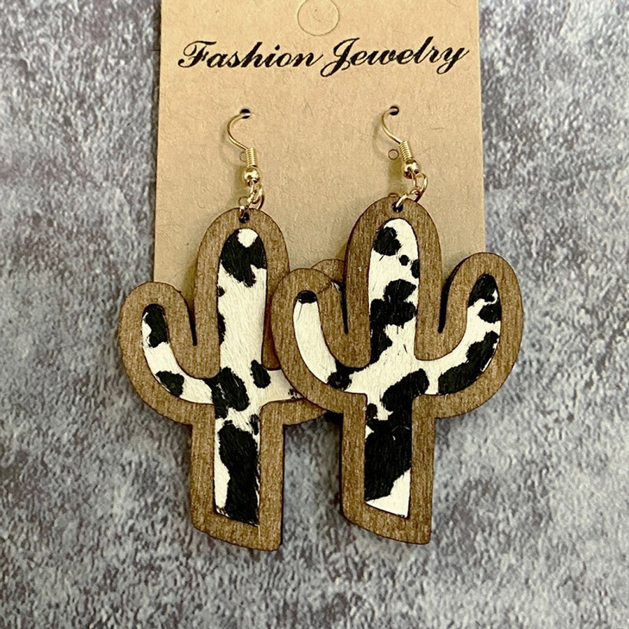 Embrace your adventurous spirit with our Cowhide Cactus Wooden Dangle Earrings, a playful fusion of Western charm and bohemian style. Crafted from high-quality wood and adorned with cowhide patterns, these earrings feature whimsical cactus shapes that capture the essence of the desert landscape. Available in a variety of designs, each pair showcases unique cowhide patterns, adding a touch of rustic elegance to your ensemble.