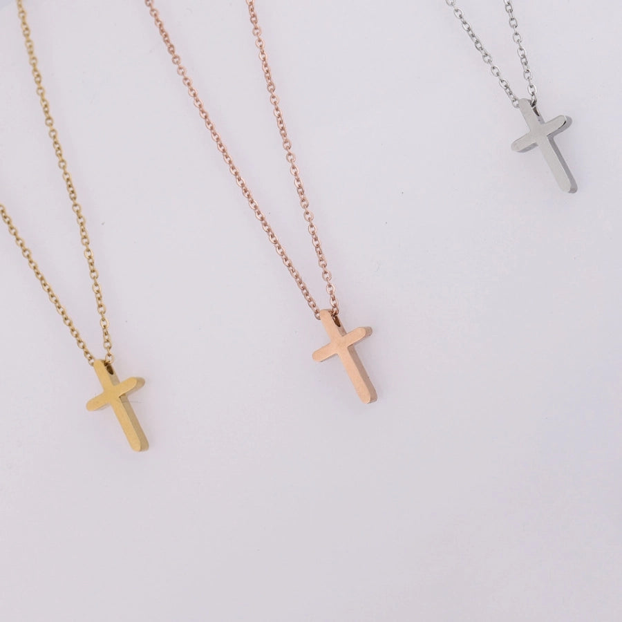 Elevate your style with our Minimalist Cross Pendant Necklace, crafted with precision from high-quality stainless steel and available in your choice of stunning finishes: 18k gold, 18k rose gold, or classic silver. This timeless piece features a sleek and understated cross pendant suspended from a delicate chain, making it the perfect accessory for any occasion. Whether you wear it alone for a minimalist look or layer it with other necklaces for added impact, this necklace effortlessly complements any outfit.