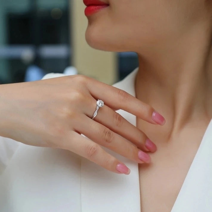 The Marisol Moissanite Ring is a breathtaking piece that embodies elegance and sophistication. Set in high-quality 925 sterling silver, this ring features a stunning moissanite stone that is IGI certified, ensuring its exceptional quality and brilliance. The modern design highlights the captivating sparkle of the moissanite, making it an ideal choice for engagements or special occasions.