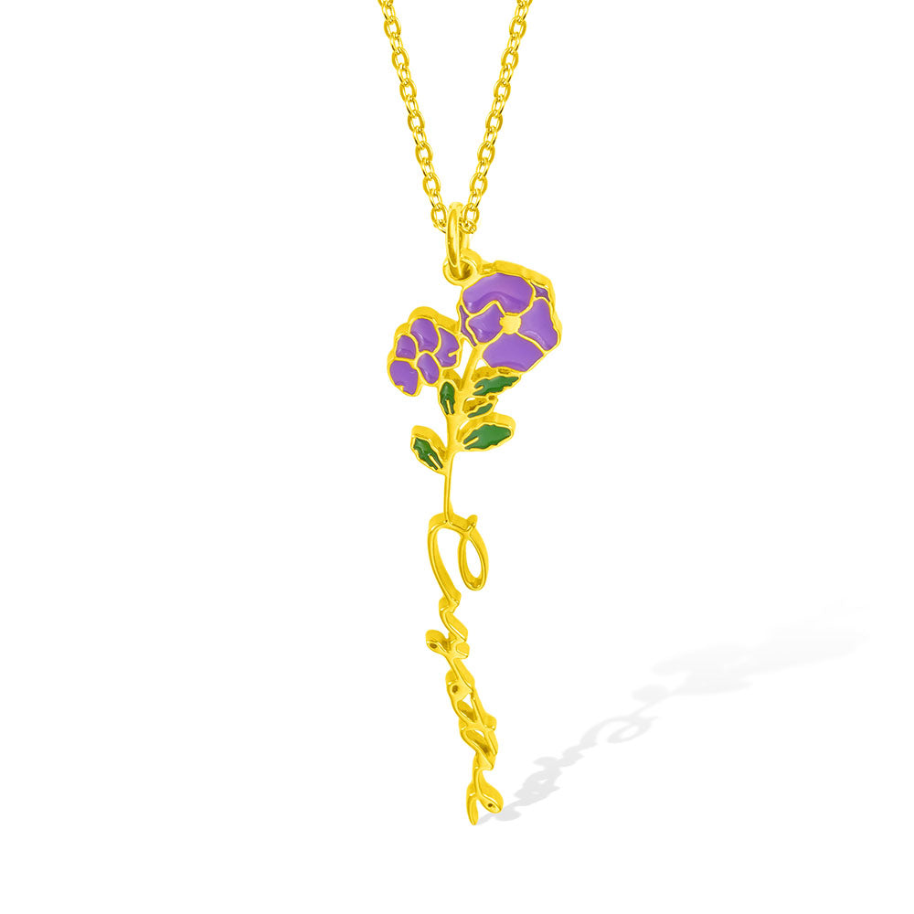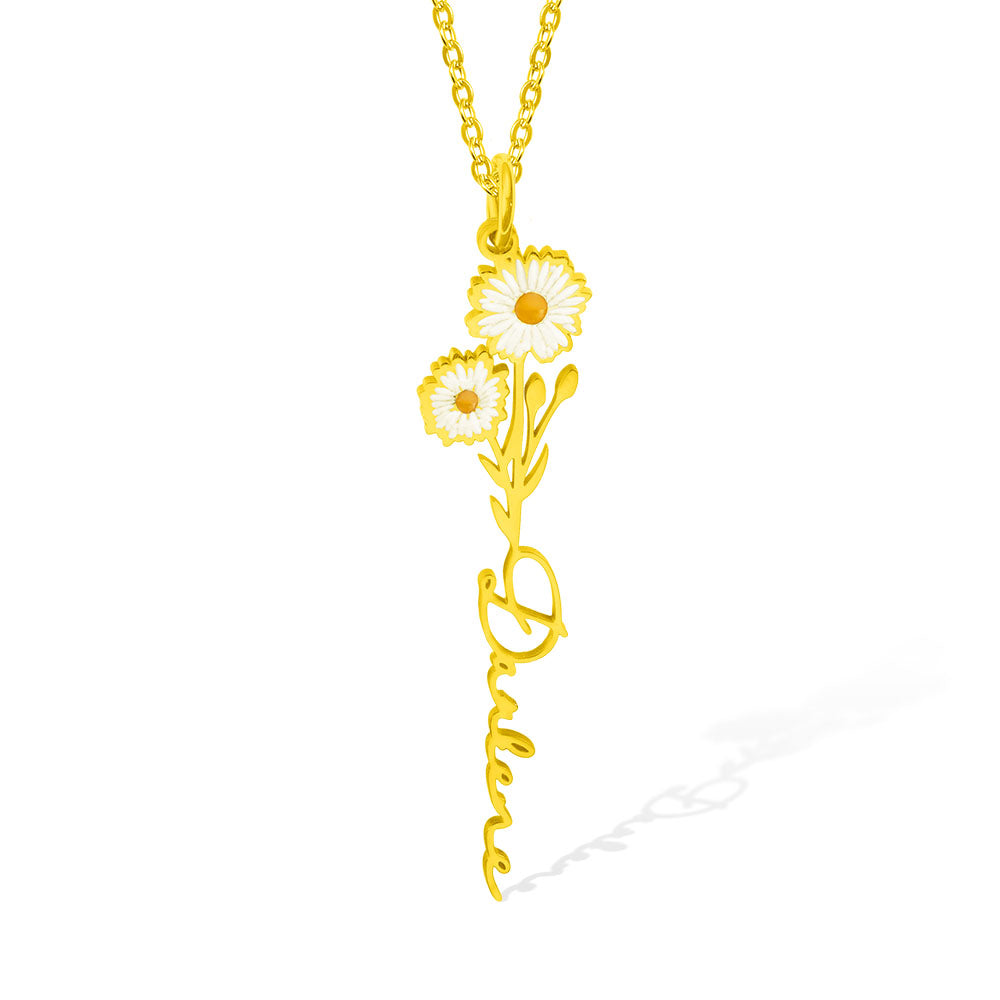 Immerse yourself in the enchanting allure of floral elegance as your name blooms alongside the intricately detailed petals of your birth flower. Whether worn as a daily reminder of your inherent beauty or cherished as a meaningful keepsake, this necklace effortlessly adds a touch of natural sophistication to any ensemble.