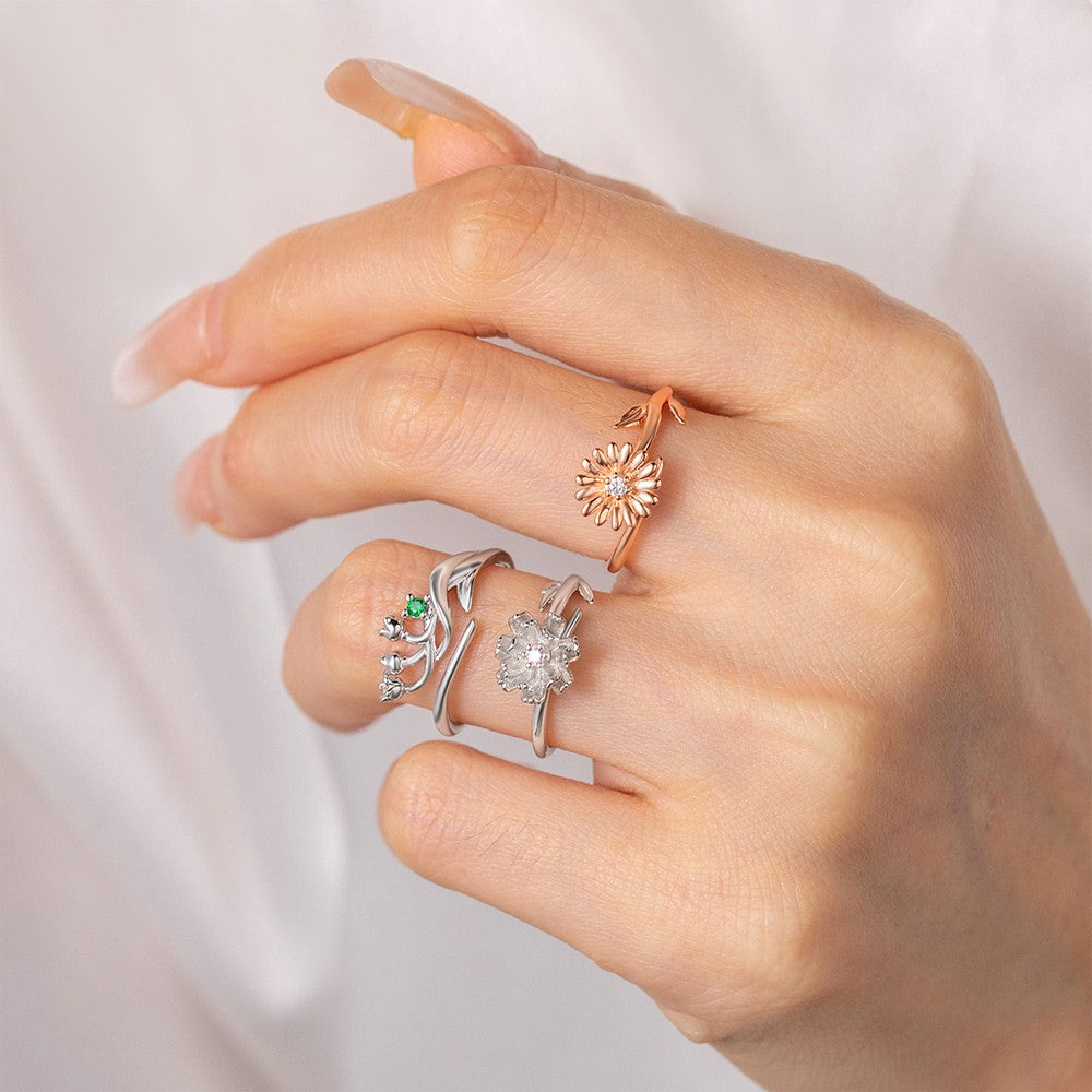 Crafted with exquisite attention to detail, each ring features a delicate birth flower design, representing the month of your birth, intricately adorned with your birthstone. This combination creates a harmonious and personalized masterpiece that reflects your individuality and significance.