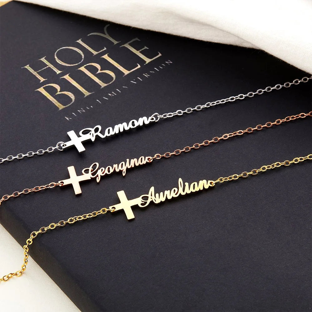 The Custom Cross Name Bracelet is a meaningful and elegant way to carry your faith with you. This beautiful bracelet allows you to personalize the cross charm with a name of your choice, adding a personal touch that makes it uniquely yours. Whether it's for yourself, a loved one, or as a gift for a special occasion, this bracelet serves as a reminder of your strength, faith, and the meaningful connections you share with others.