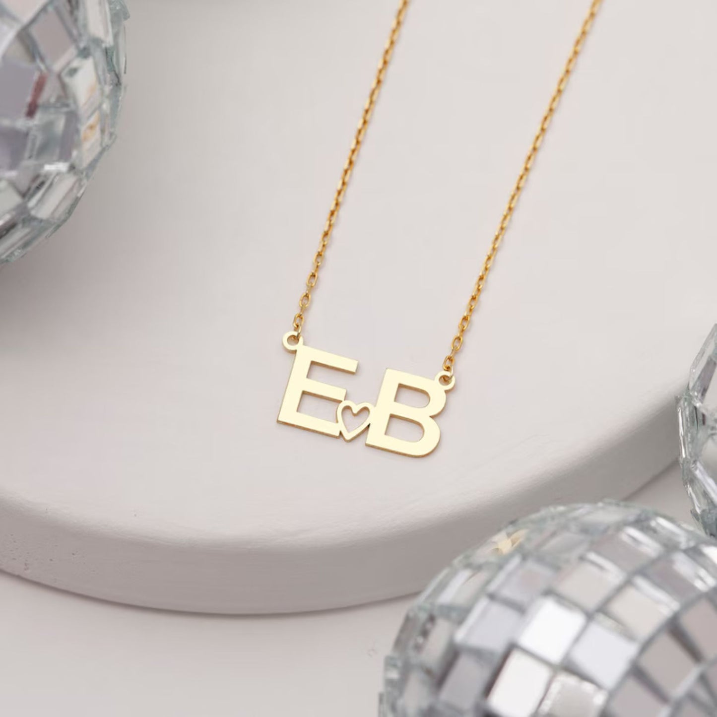 Embrace the enduring bond between you and your cherished partner with our exquisitely crafted Personalized Initials & Heart Necklace. Each intricately designed pendant features two elegantly engraved initials, symbolizing the unique identities of you and your beloved, with a graceful heart nestled between them, encapsulating the depth of your profound love and devotion.