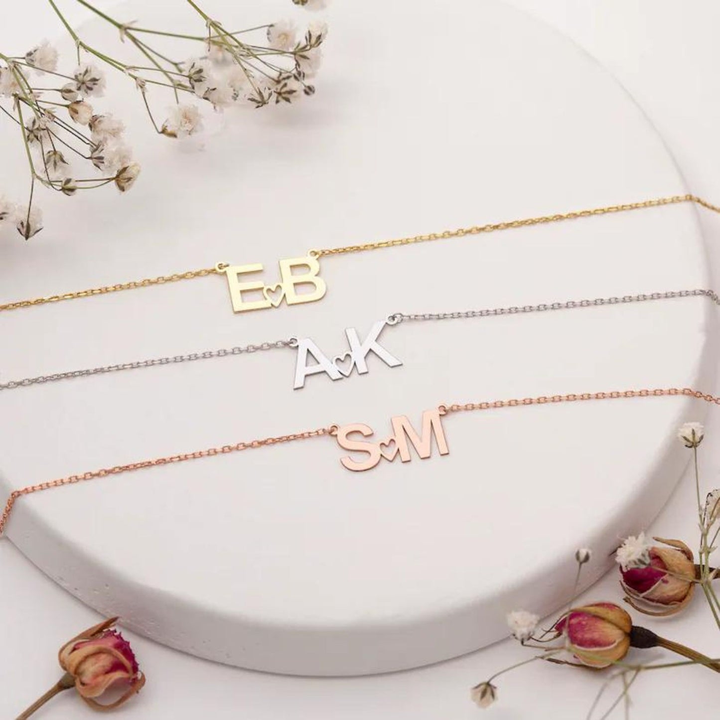 Personalized Initials & Heart Necklace