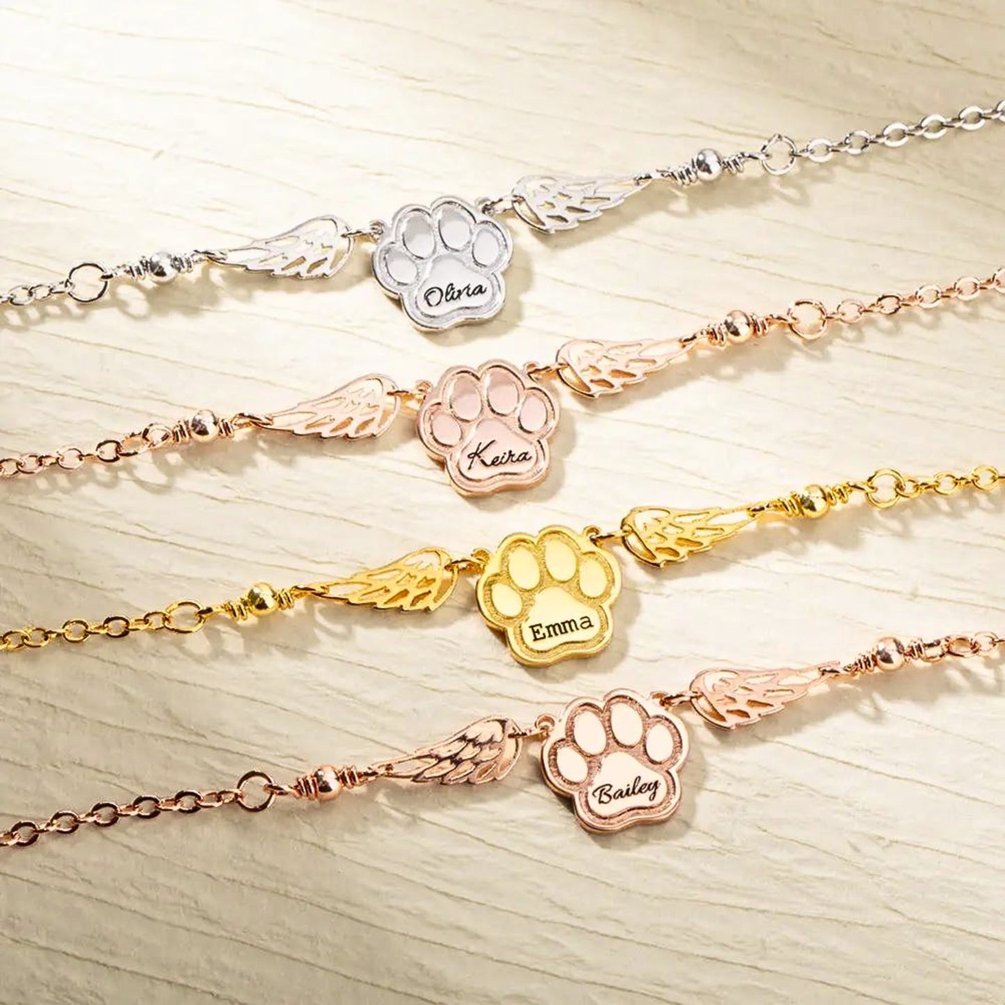 Available in a range of high-quality materials, including sterling silver, gold, and rose gold, you can choose the option that best suits your personal style and preferences. The Personalized Pet Paw Wings Bracelet is not just a piece of jewelry—it's a heartfelt expression of the bond between you and your beloved pet, ensuring that their memory lives on in your heart forever.