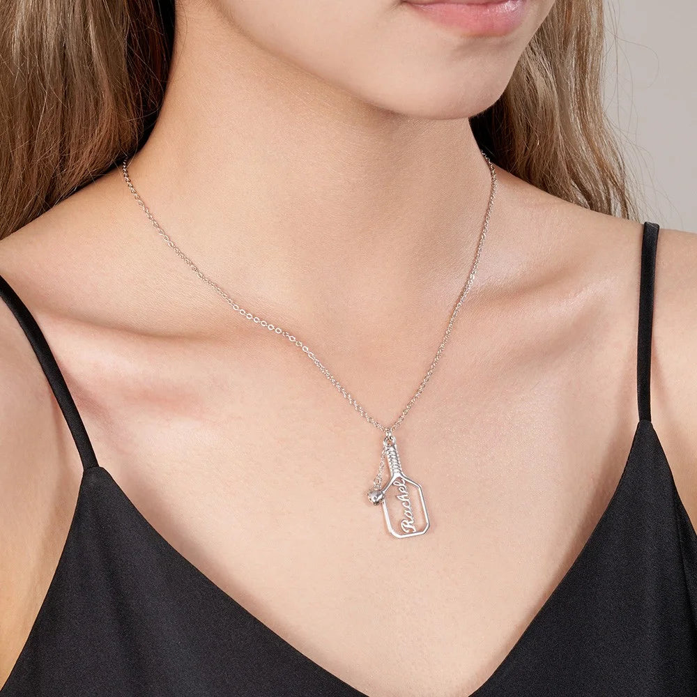 Showcase your passion for pickleball with the personalized pickleball paddle name necklace — a sleek and sporty way to carry your love for the game wherever you go. Featuring a detailed paddle design alongside your custom name, this necklace blends athletic spirit with personal flair, making it a unique accessory that celebrates your individuality on and off the court.