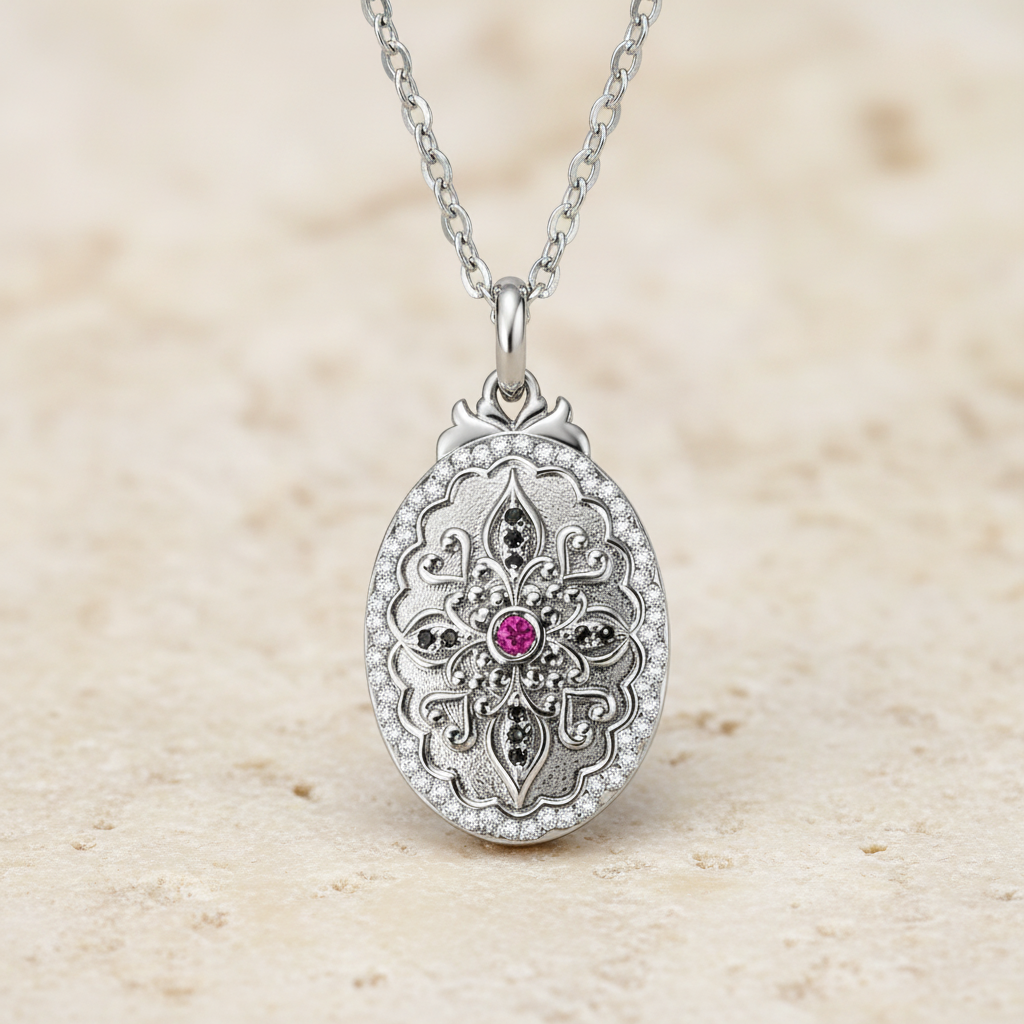 Timeless and elegant, the Personalized Vintage Ruby Locket Necklace blends vintage charm with modern customization. Featuring a stunning ruby gemstone at its center, this beautifully crafted locket opens up to hold a special photo of your choice. The intricate detailing and rich red hue of the ruby evoke classic sophistication, making this locket a true statement piece. With the ability to upload your own photo, this necklace becomes a deeply personal treasure that keeps your loved ones or precious moments close to your heart.