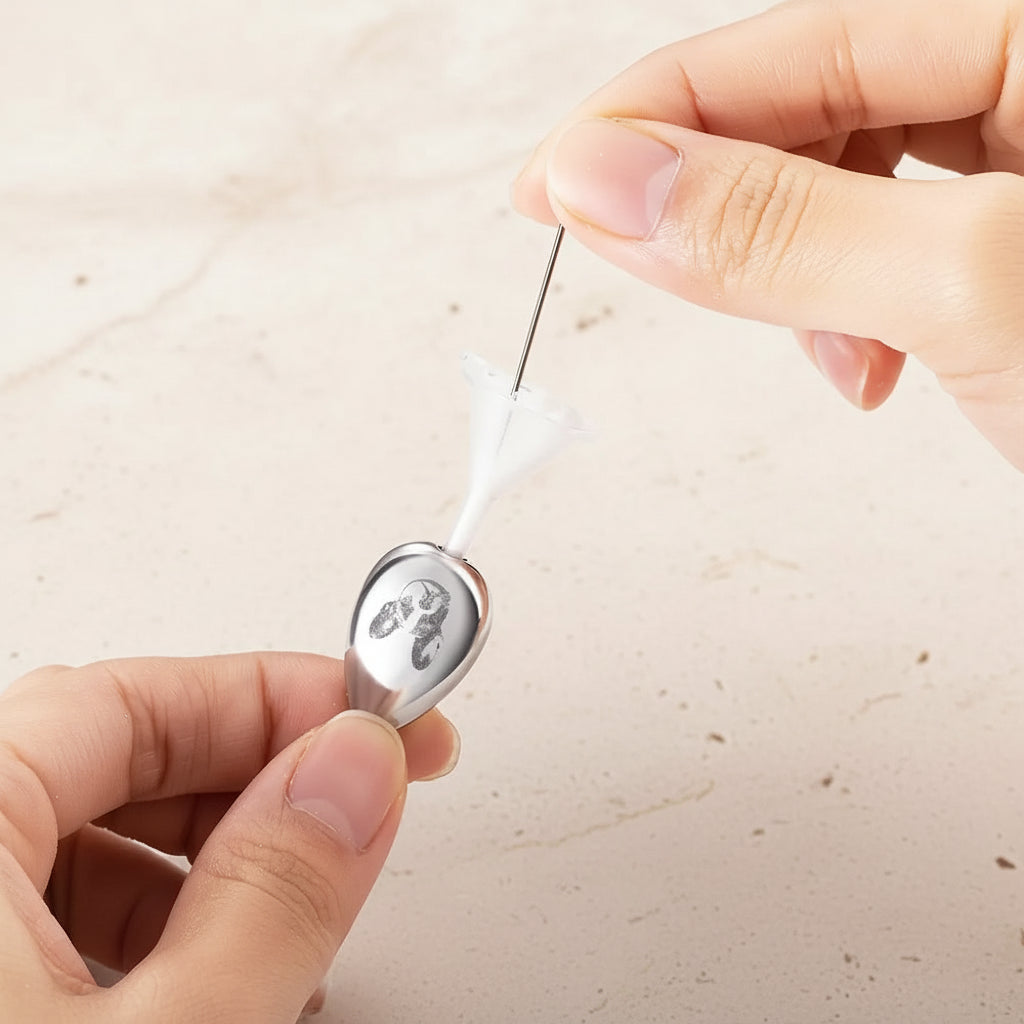 Preserve the memory of your beloved companion with this elegant teardrop urn necklace. Crafted to hold a small portion of ashes or fur, this pendant combines meaningful functionality with refined design. The teardrop shape creates a graceful silhouette, while the portrait detail personalizes your keepsake. Wear it close to your heart as a lasting tribute to the bond you shared. A compassionate way to keep your pet's spirit with you always.