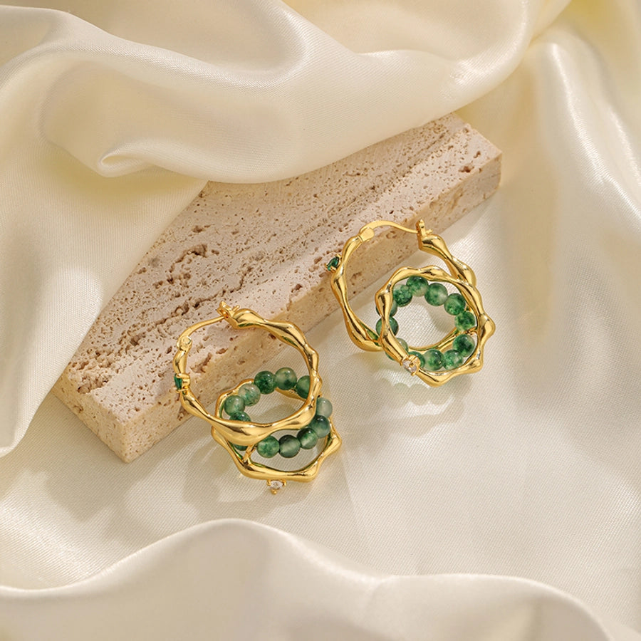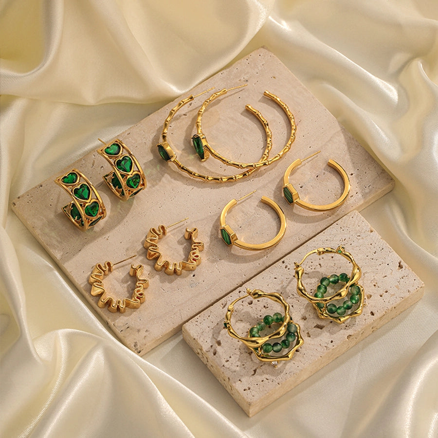 The Vintage Moss Hoop Earrings offer a beautiful blend of classic elegance and modern flair. Crafted from durable stainless steel with a luxurious 18K gold finish, these hoops come in a variety of designs to suit any personal style. The vintage-inspired aesthetics add a unique charm, making them a standout accessory that enhances both casual and formal outfits.