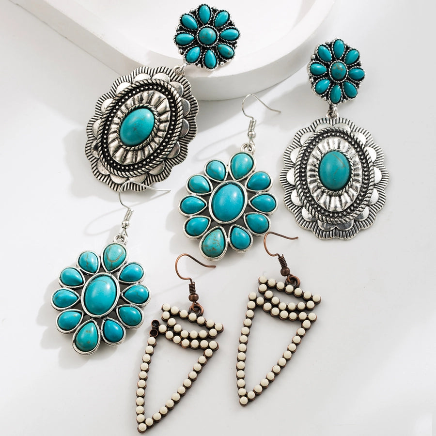 The Western Howlite Turquoise Dangle Earrings bring a touch of bohemian flair to your jewelry collection. Crafted from sturdy stainless steel, these earrings feature stunning howlite turquoise stones that exude a vibrant, earthy charm. With three unique designs to choose from, you can easily find the perfect pair to express your individuality and complement your style.